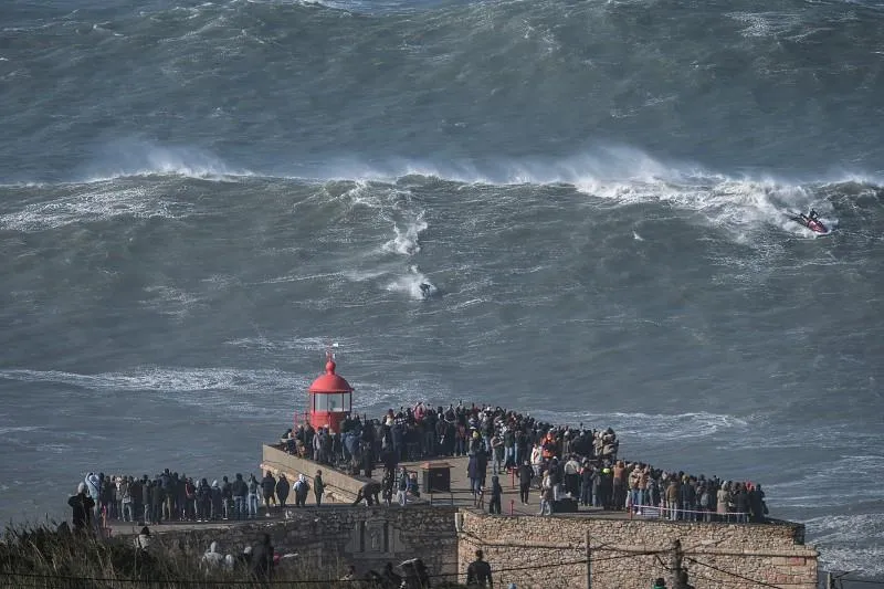 Graças ao Canhão da Nazaré, uma falha geológica submarina que amplifica as ondulações do Atlântico, as ondas aqui podem ultrapassar os 30 metros de altura.