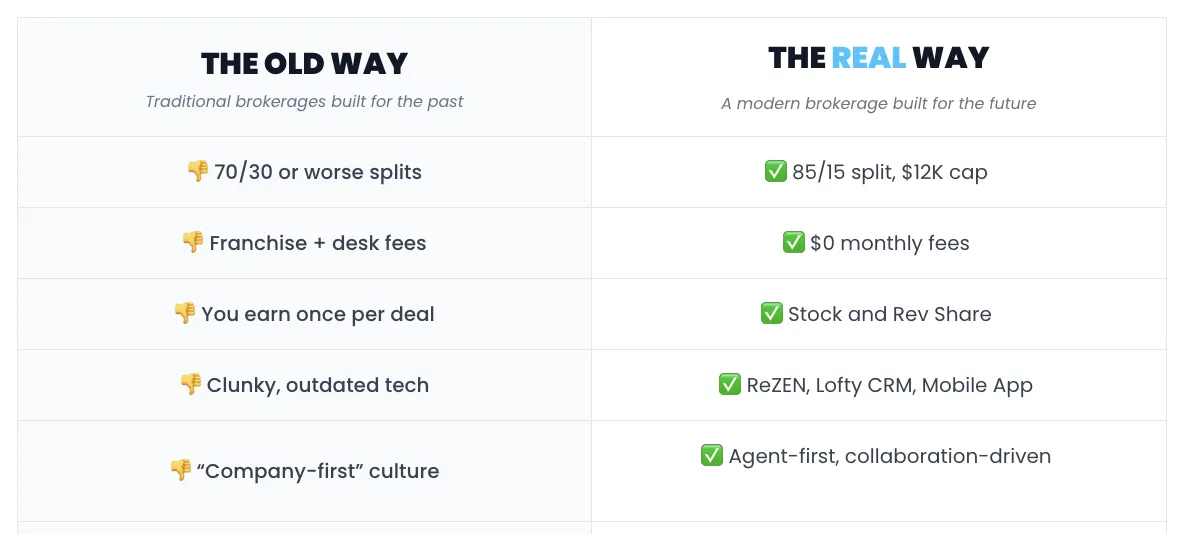 REAL is fundamentally built to be the best brokerage for agents who value maximum personal net income and digital efficiency, not a multi-level marketing scheme.