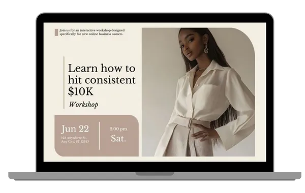 Learn how to hit consistent $10K months—even while managing a full-time job." A concise statement highlighting the key benefit of the training