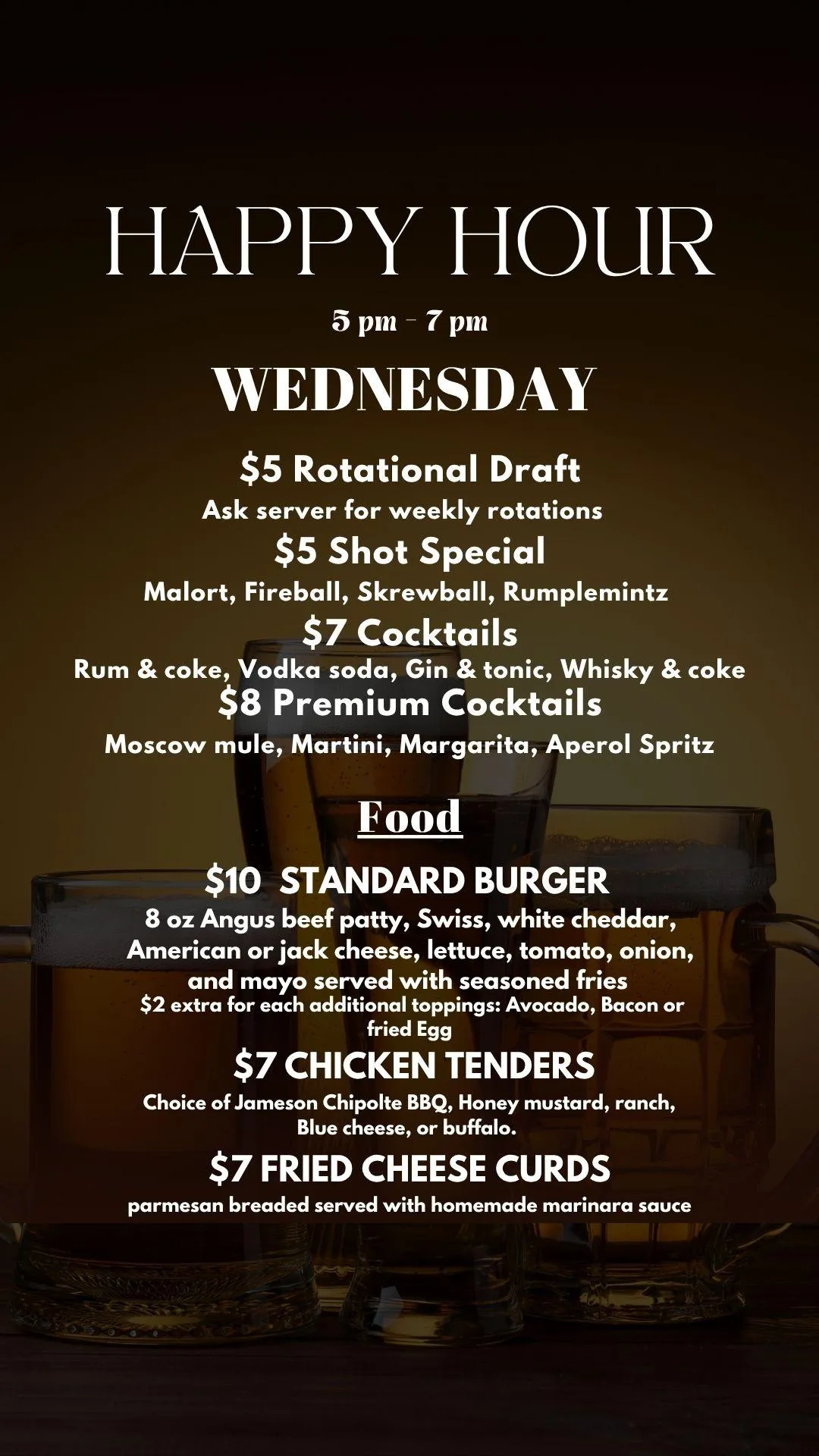 HAPPY HOUR SPECIALS EVERYDAY OF THE WEEK