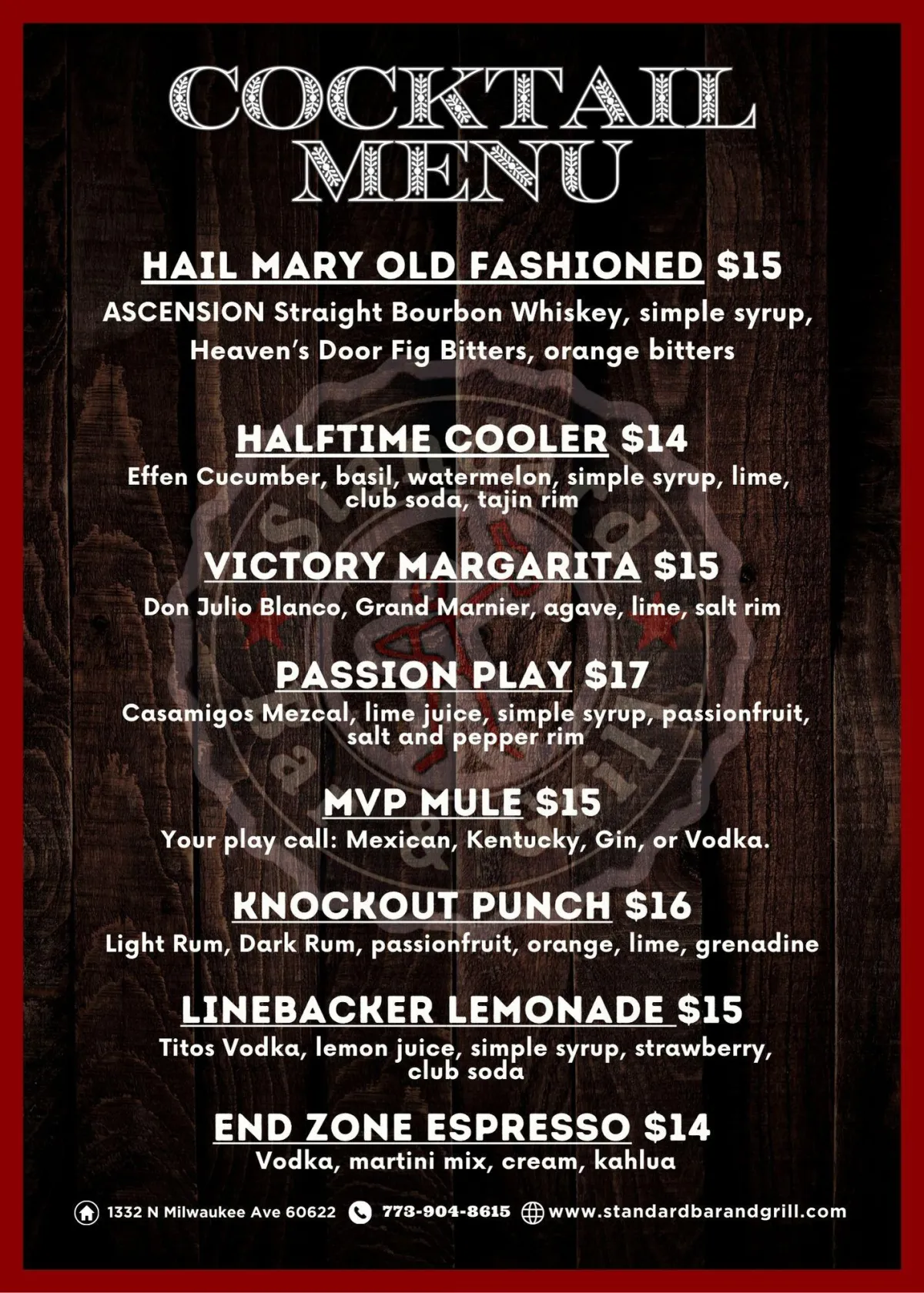 © 2025 Standard Bar & Grill. All rights reserved.