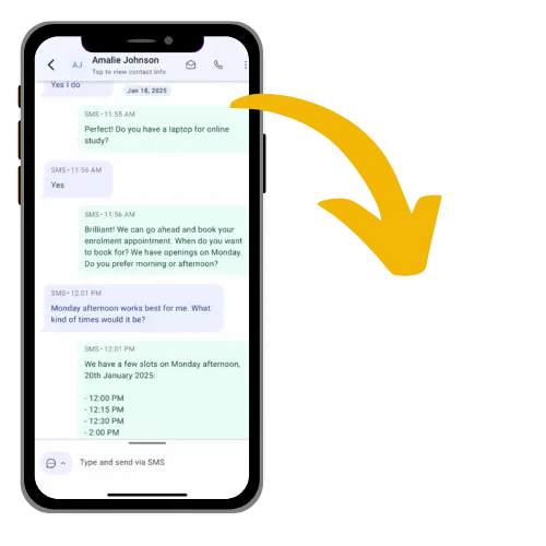 Our AI team are capable of dealing with learners and any issues they may have. The goal of our AI team is to book further appointments for enrolment with your team once the learner has been checked for eligibility. If they are struggling to do this, they will always refer to your internal team for guidance.
