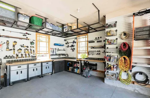Garage & Shop Organization: Maximize functional space with professional garage and industrial shop organization. We design and install custom storage solutions, from residential shelving to commercial tool management systems.