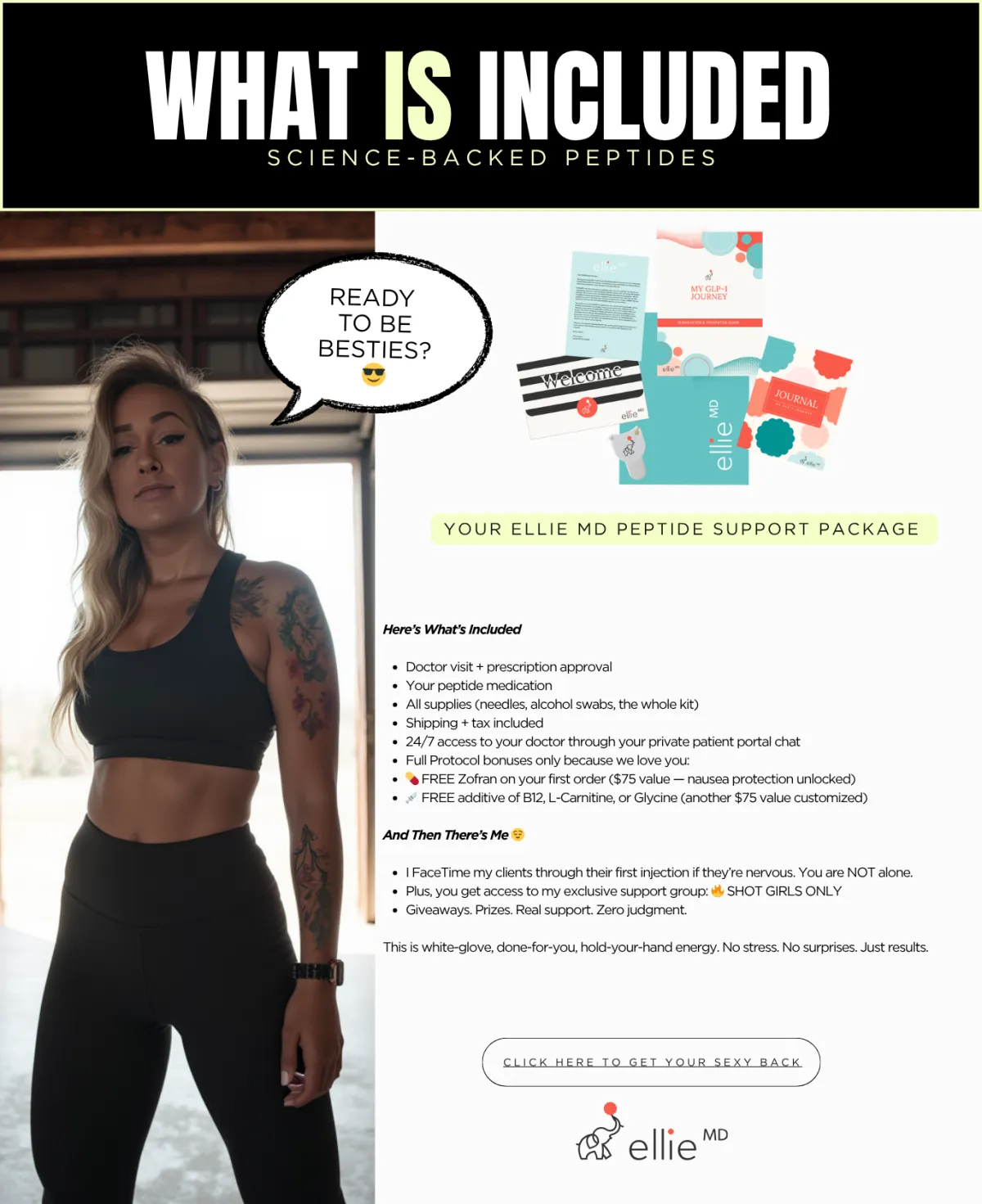 She stopped canceling herself. Hormone support + muscle tone + feeling hot again — that's the Ellie MD difference.