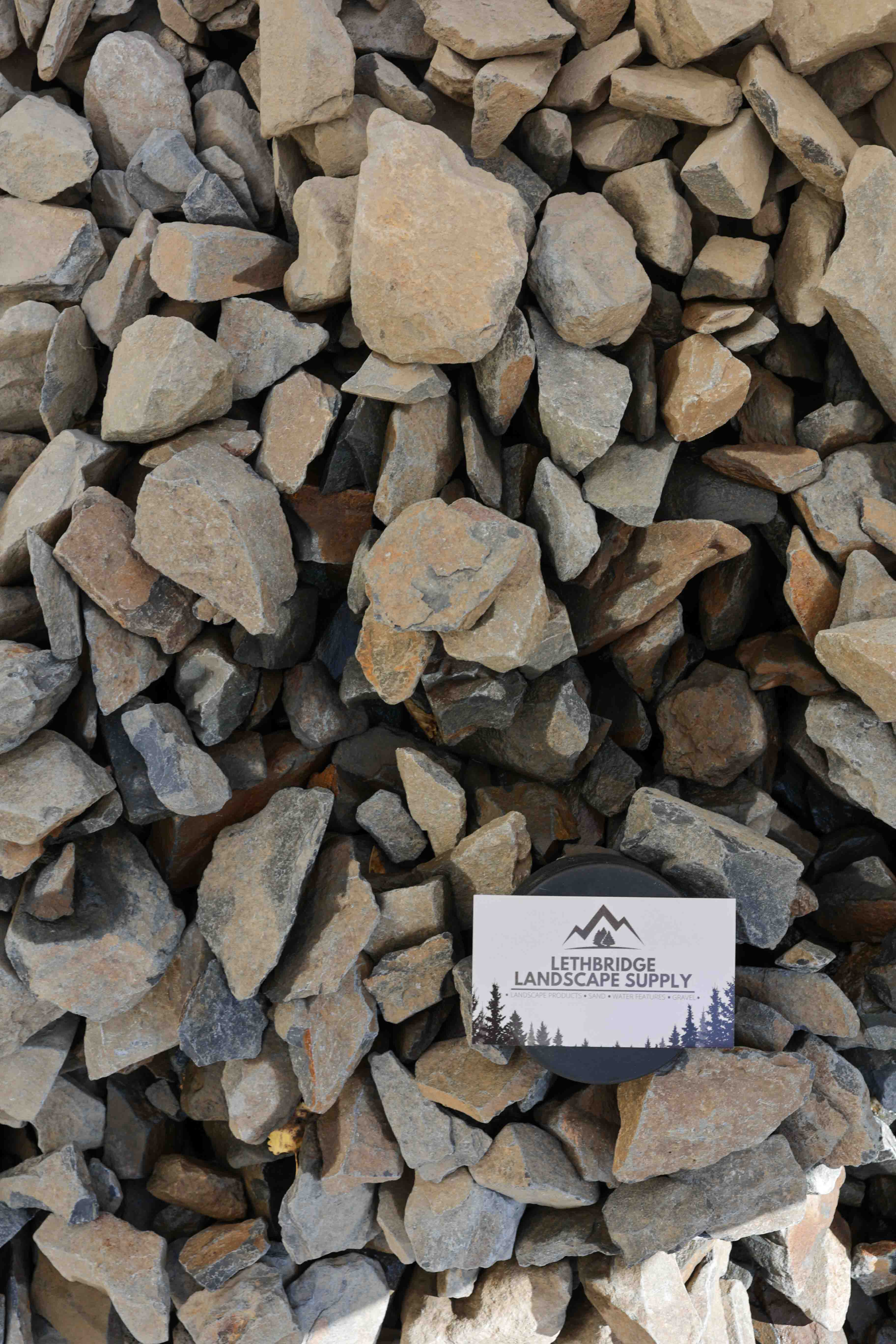 40mm Kendal is a natural stone from the BC Rockies, it fractures similar to a large shale and lays fairly flat when spread. The size ranges from 30mm-50mm and has a rich brown colour with black low lights. It is generally used as a decorative rock. It is also popular in fish tanks, ponds and streams.