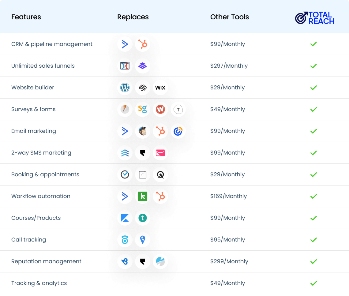 TotalReach is a powerful all-in-one marketing platform built on GoHighLevel — but at a fraction of the cost. Instead of paying $97/month (₦100,000+ per month), you get the same tool for just ₦32,500/year