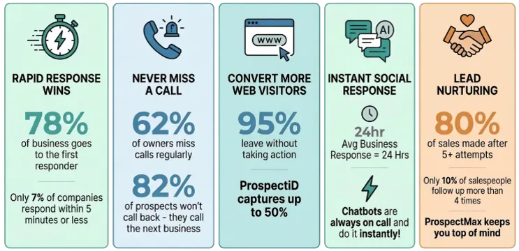 With ProspectMax, we ensure every call is handled promptly, social questions get responded immediately and website visitors have multiple options to engage and get questions answered.