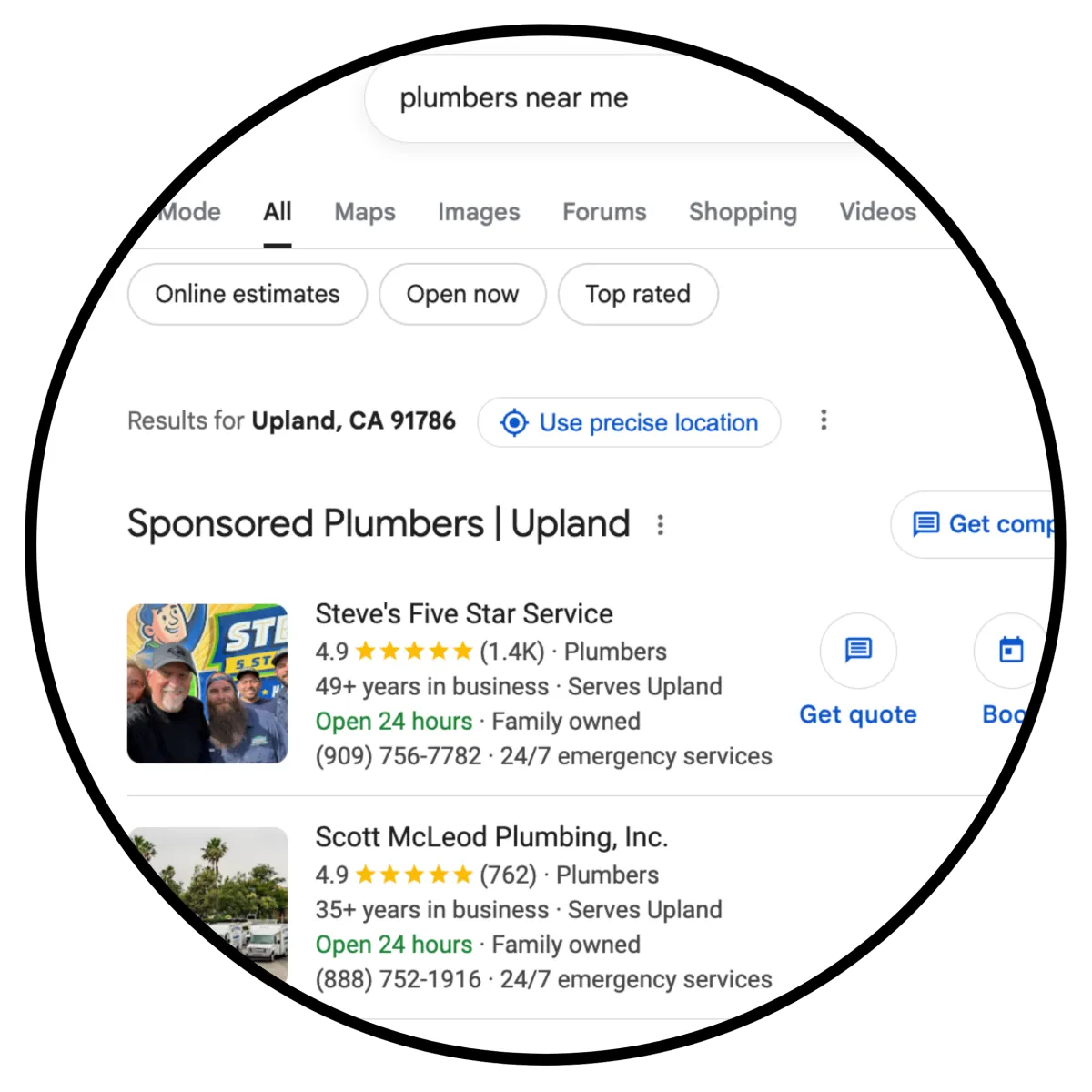 A website whose wording, pages, or service tabs closely match the keywords they want to target, such as emergency service, near me, or specific service terms