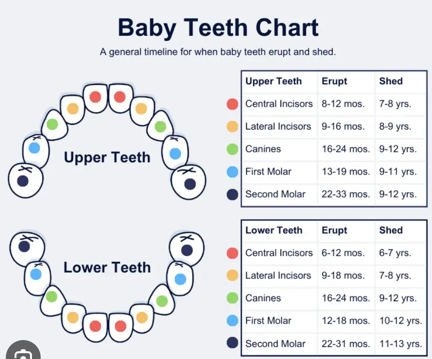 Figure 1. See below - Primary (baby) tooth eruption chart.