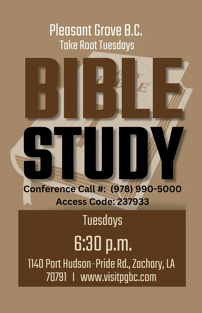 Take Root Tuesdays Bible Study: 6:30 PM every Tuesday(in person/conference call)