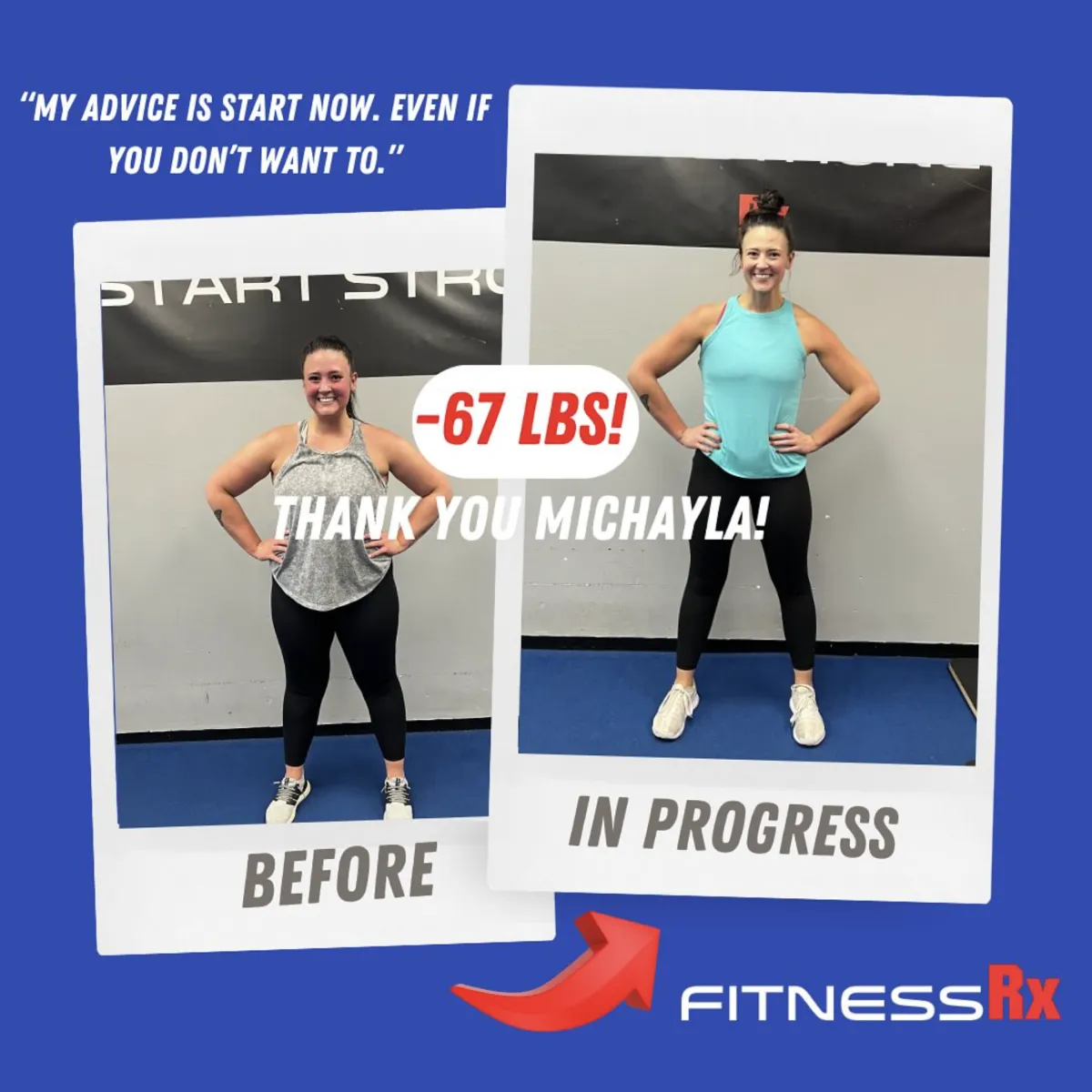 I’ve struggled with my weight my whole life. Like most women I would instantly cut calories and basically starve myself to lose weight. Ariel and her team showed me the correct and healthy way to lose and it worked! I did the 8 week program and not only lost weight but became stronger and I am so proud of myself. They are with you every step of the way physically and emotionally and I couldn’t recommend Fitness RX enough ❤️