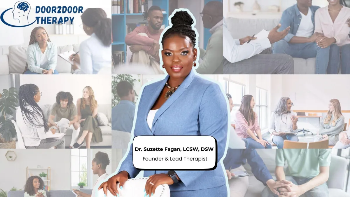 At Door2Door Therapy, we believe that healing and personal growth should be accessible, convenient, and rooted in compassion. Founded by Dr. Suzette Fagan, a Licensed Clinical Social Worker with over 20 years of trauma-informed care experience, our practice was built to meet individuals, couples, and families where they are — both emotionally and geographically.