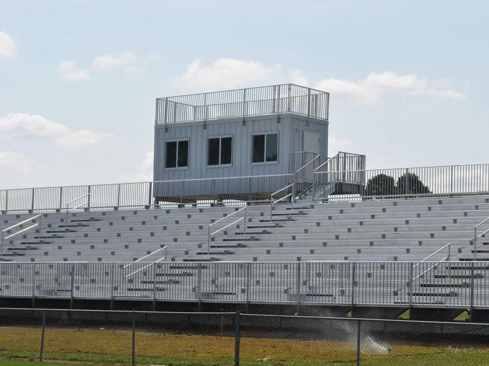 For over 40 years, Southeastern Seating Inc. has been a trusted industry name in designing and building safe, quality, and comfortable press boxes for outdoor aluminum bleacher stadiums throughout the Eastern United States and beyond. Our expertise allows us to accommodate any size event, whether it’s a large sports stadium, a university, a high school, a rodeo, or a speedway. We offer a variety of exterior colors to match any aesthetic (show your team pride!), and all of our press boxes are constructed with the highest quality 26 gauge R-rating metal panels.