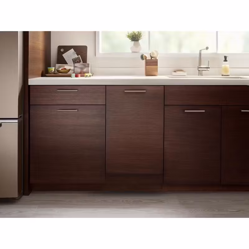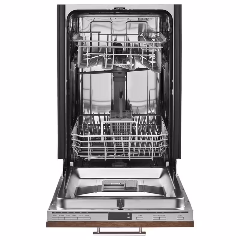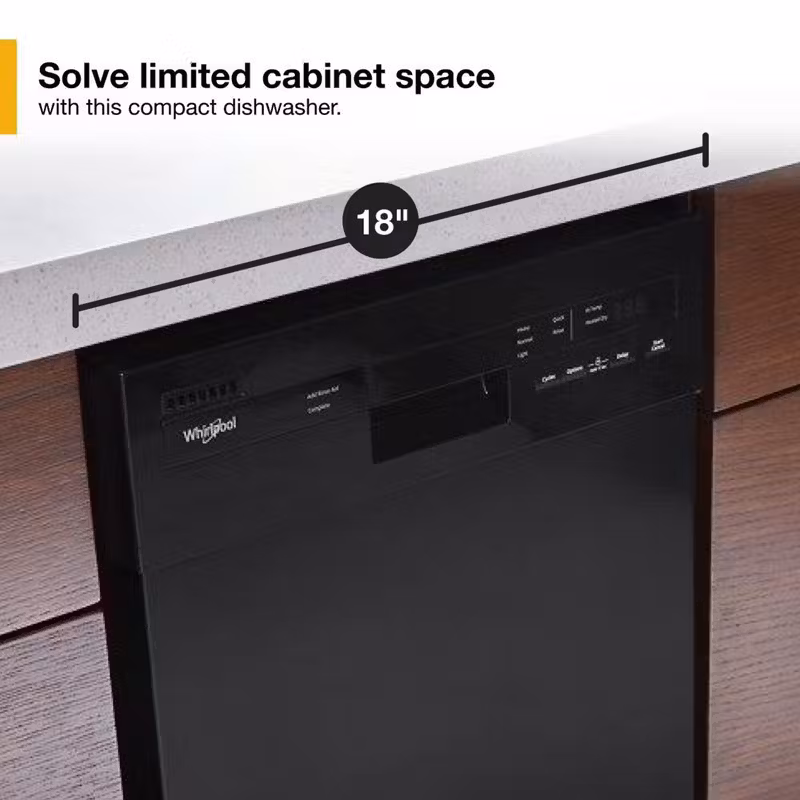 This space-saving dishwasher features the same functionality as a traditional dishwasher but is made to work in smaller spaces. The compact design can fit 8 placesettings while freeing up room in the kitchen. Choose a Whirlpool® or KitchenAid® panel kit (n