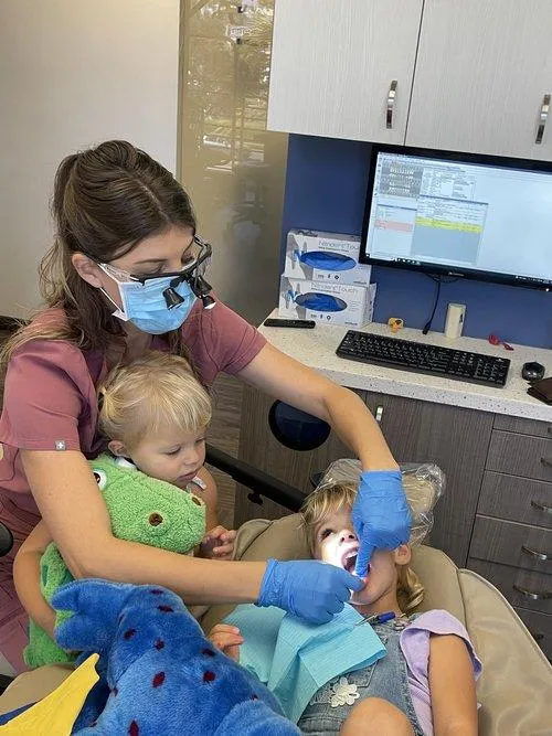 The American Academy of Pediatric Dentistry recommends the first visit by age 1 or within 6 months of the first tooth erupting. Although it’s a great chance to get personalized tips and help your child feel comfy at the dentist early on, I personally feel the sweet spot for a child’s first dental visit is between ages 2 and 3. However, please understand that there are exceptions to this suggestion of mine. To understand more about this, please read my blog titled “Your Child’s First Dental Visit” as I explain more about reasons to seek a dental visit closer to the recommended age mentioned above.