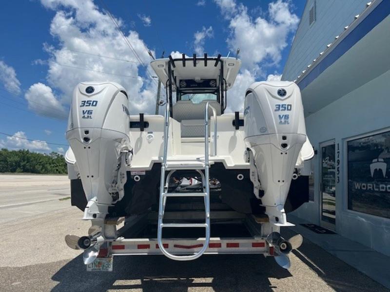 Experience offshore capability and luxury comfort in one of the most versatile dual-console catamarans on the market — the World Cat 325DC. Powered by twin Mercury 350 Verado V10s, this boat delivers a smooth, stable ride in all conditions with the confidence of catamaran performance and fuel-efficient cruising.