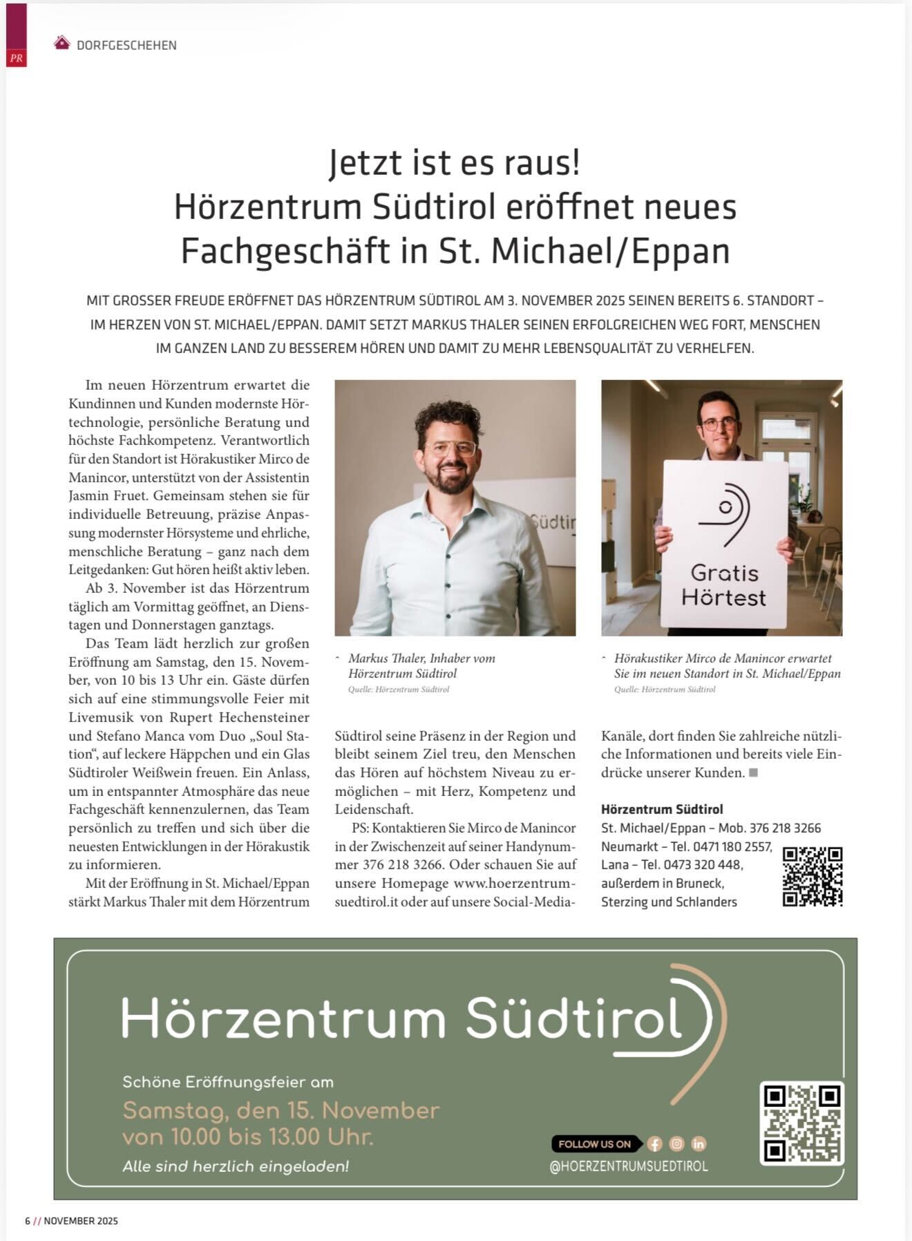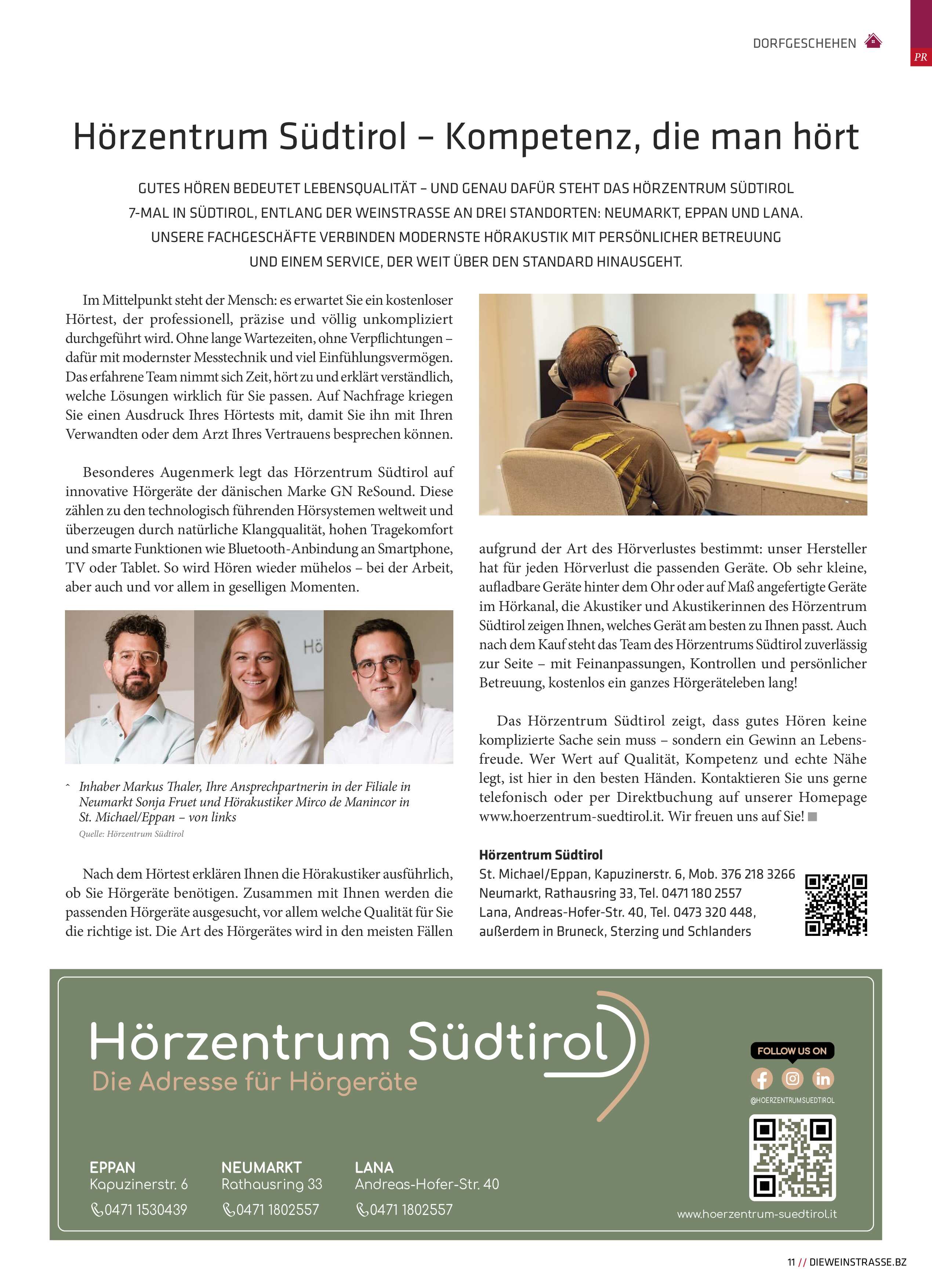 Mit über 17 Jahren Erfahrung, Ihr verlässlicher Partner für besseres Hören – mit modernster Technik und persönlicher Betreuung an 7 leicht erreichbaren Standorten in ganz Südtirol.