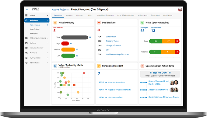 Centralize diligence findings across workstreams and leverage SiSo's interactive dashboards for efficient data review