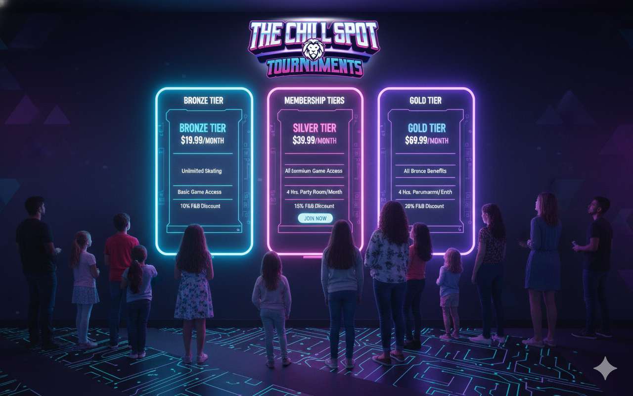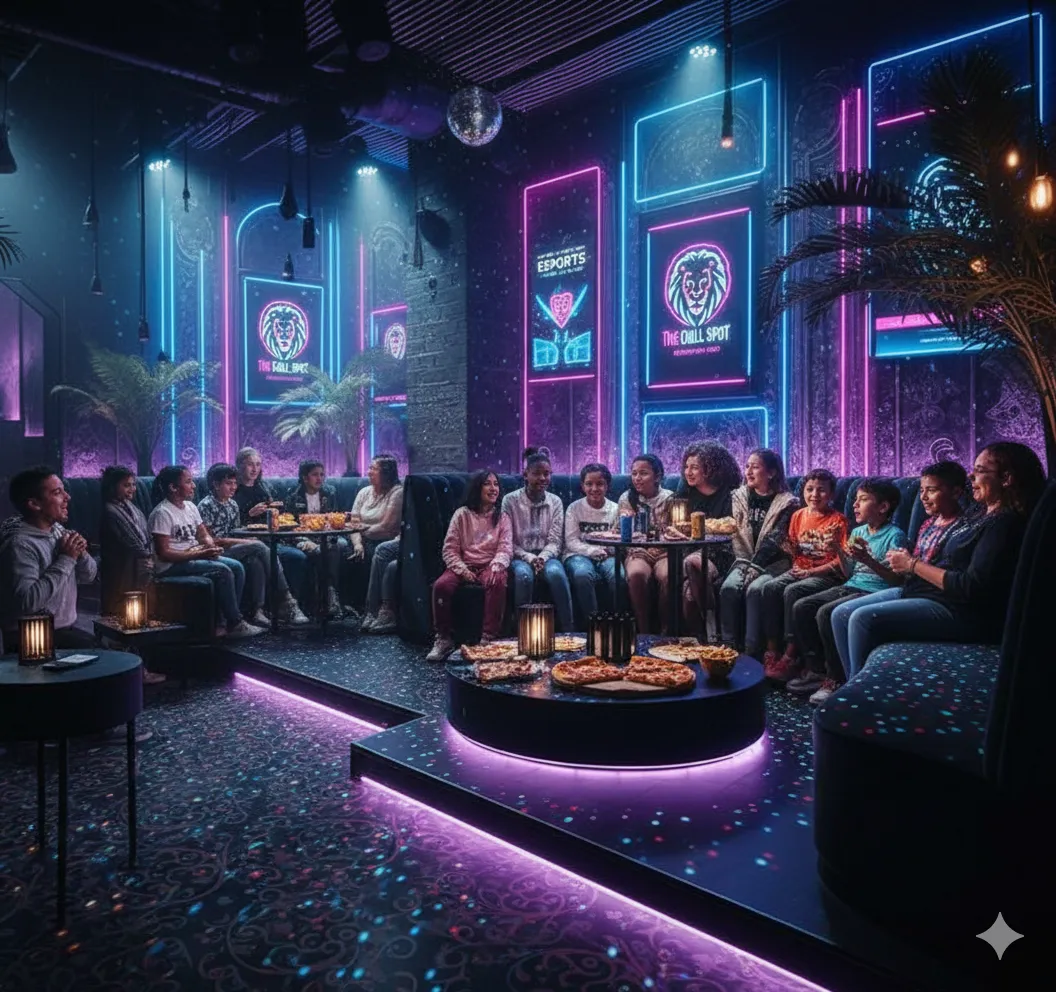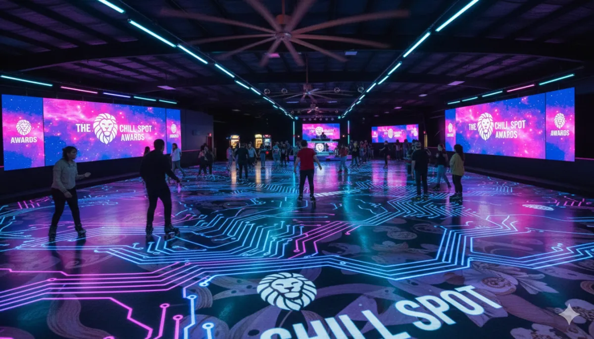 Cinematic Visuals: Huge digital screens surround the rink, displaying galactic visuals and "The Chill Spot" branding to keep the energy electric.