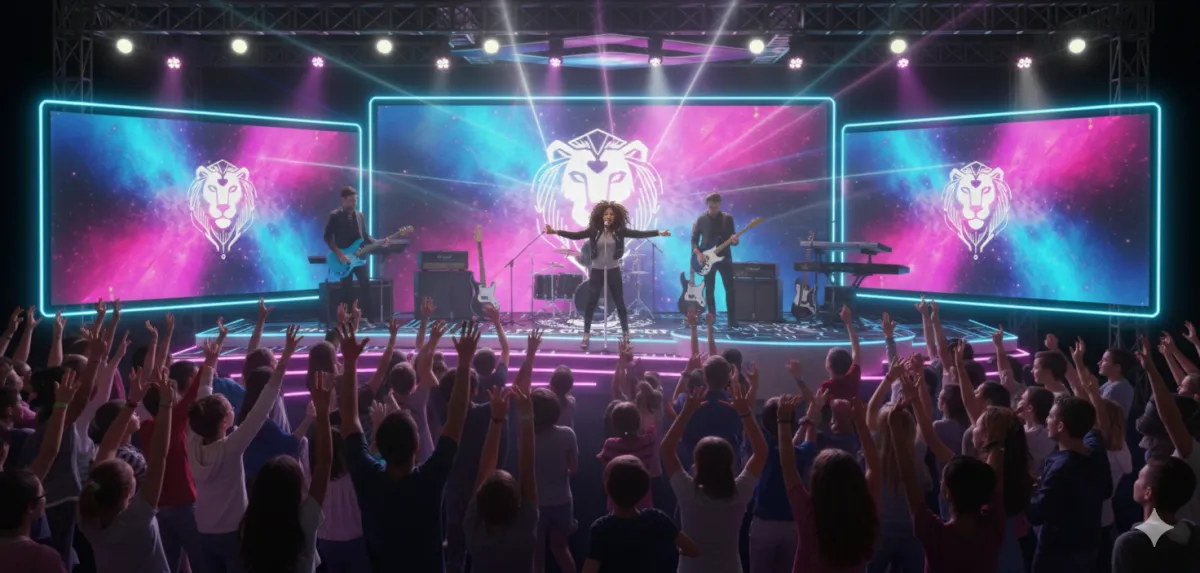 Concert-Grade Visuals: Perform in front of massive, high-definition LED backdrops featuring vibrant, galaxy-inspired visuals and the iconic Chill Spot lion logo.