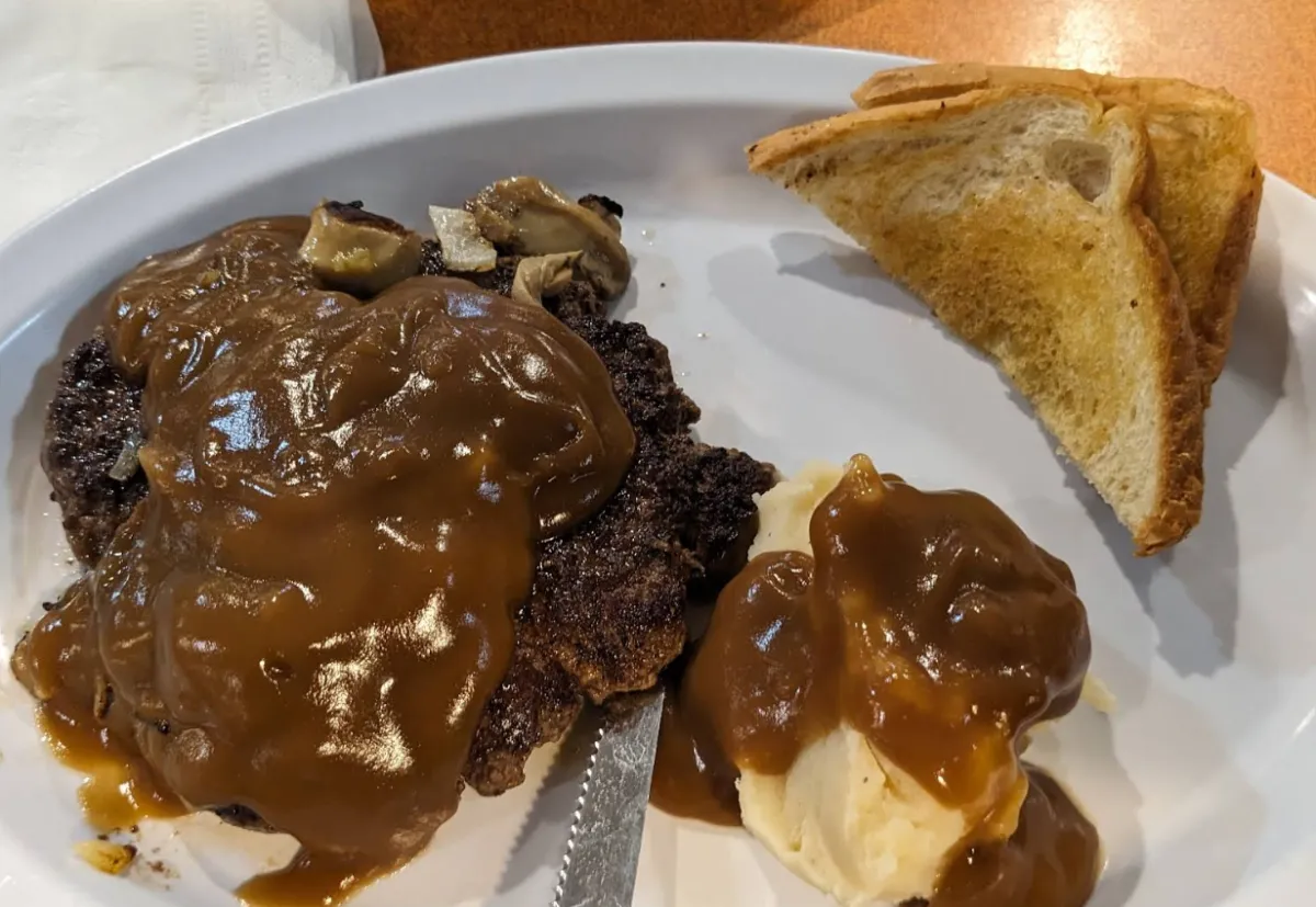 Ground sirloin and two eggs served with hash browns or grits and biscuits & gravy or toast