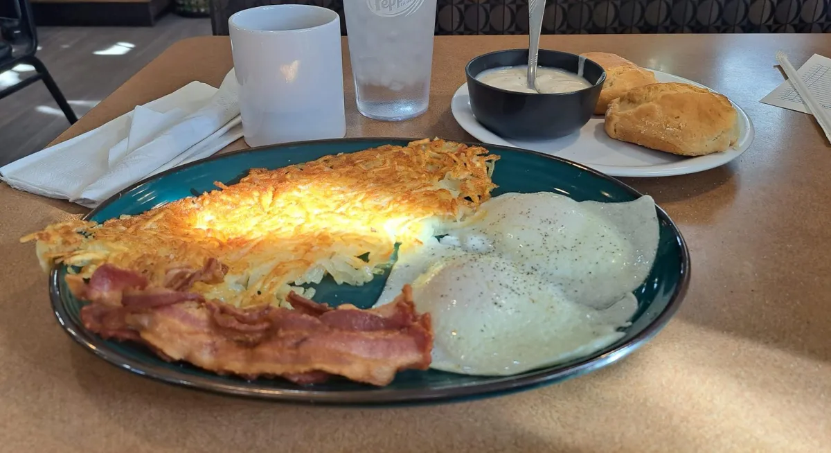 Country ham and two eggs served with hash browns or grits and biscuits & gravy or toast