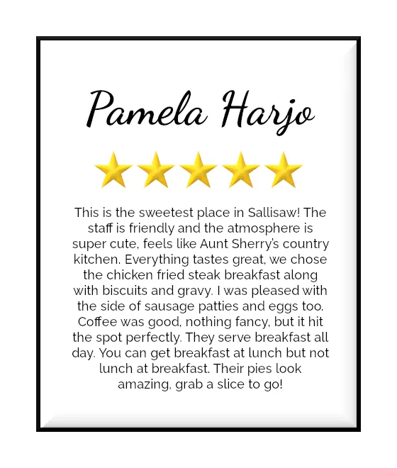 Experience the true taste of Southern comfort with one of the many house favorites: the full range of breakfast classics, a bacon cheeseburger, fish and hush puppies, chicken fried steak, and more, all alongside a whole selection of our famous pies and cinnamon rolls! There's something for everyone at Sherry's Farmhouse Kitchen, so check out our full menu to get a real taste of homestyle country cookin' straight from the heartland of America!