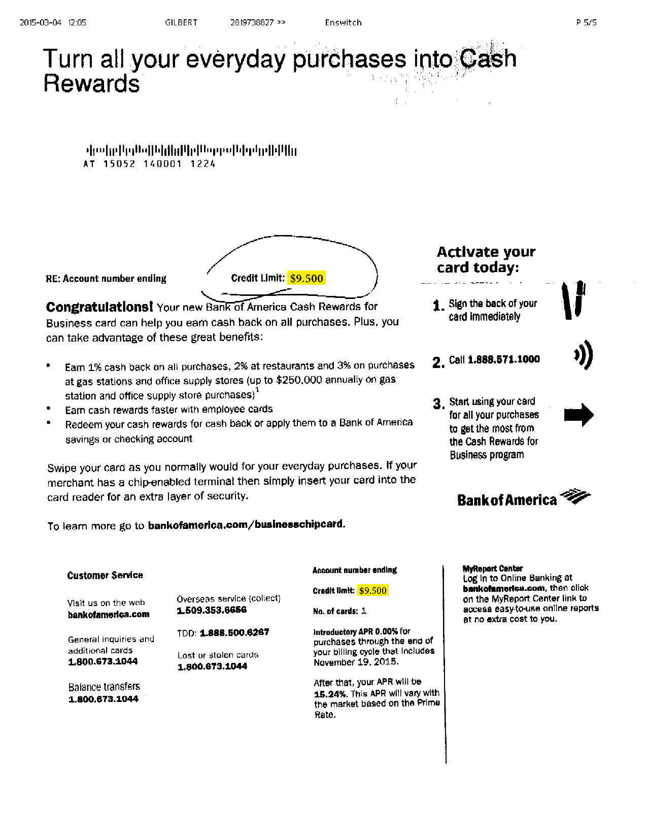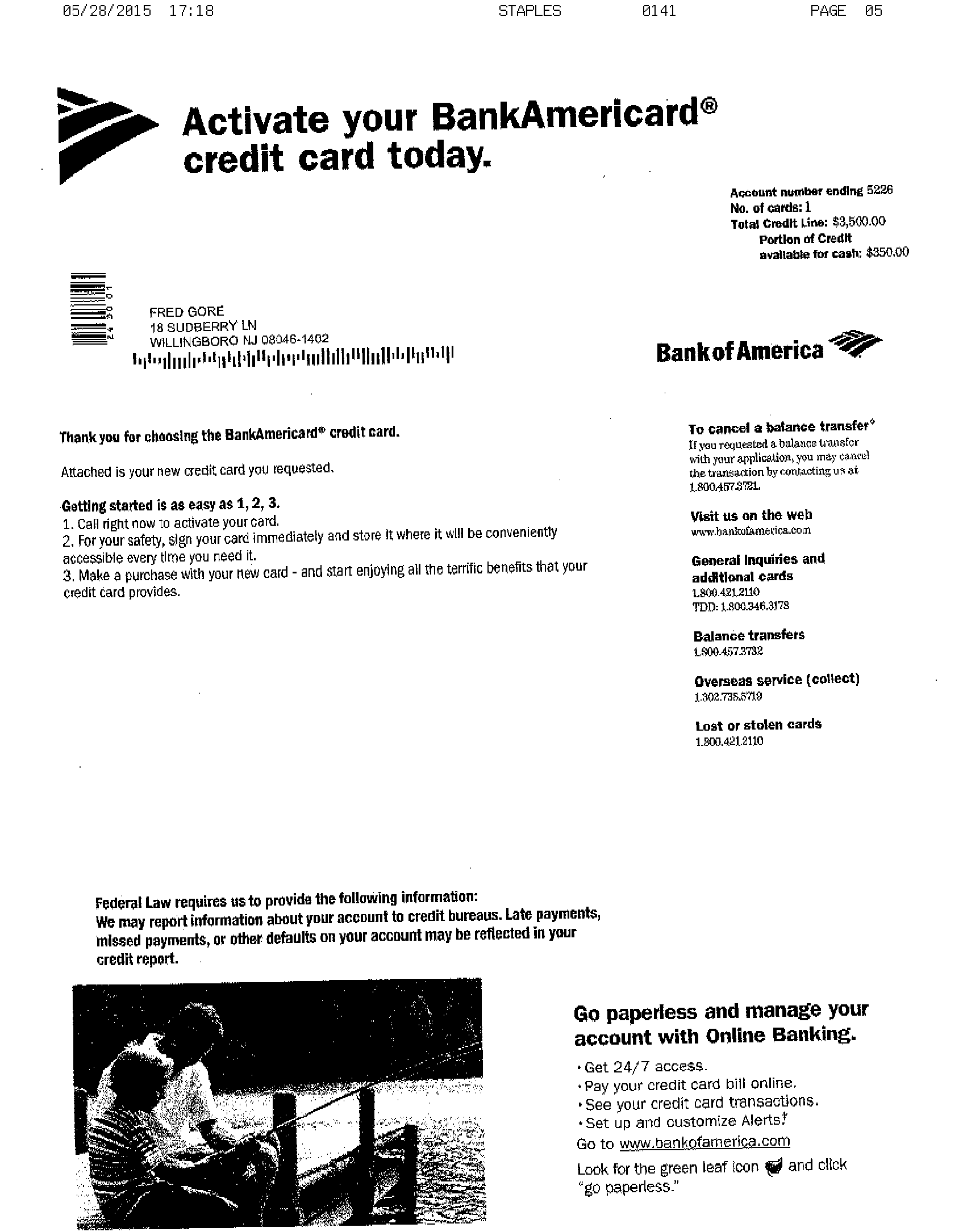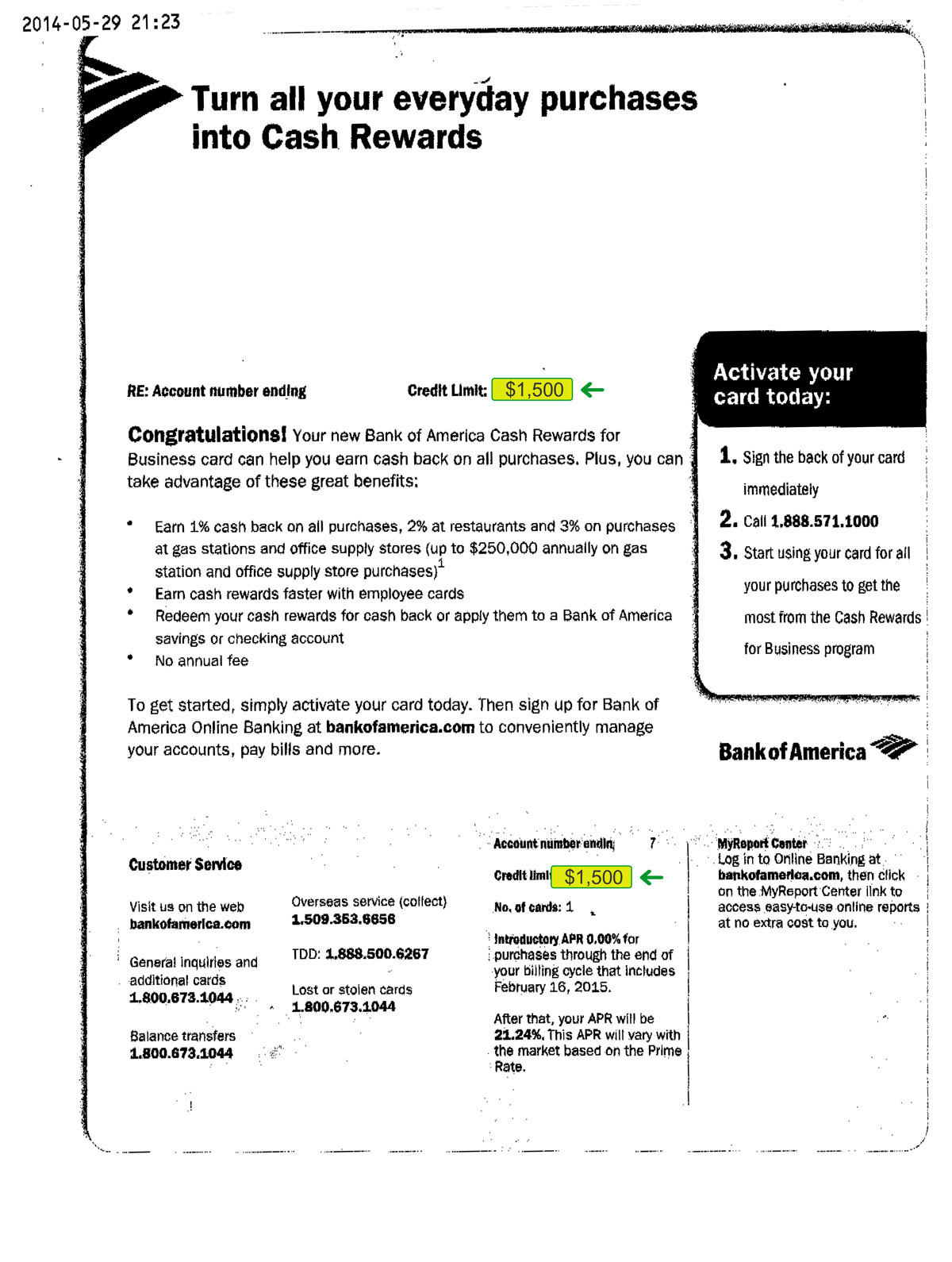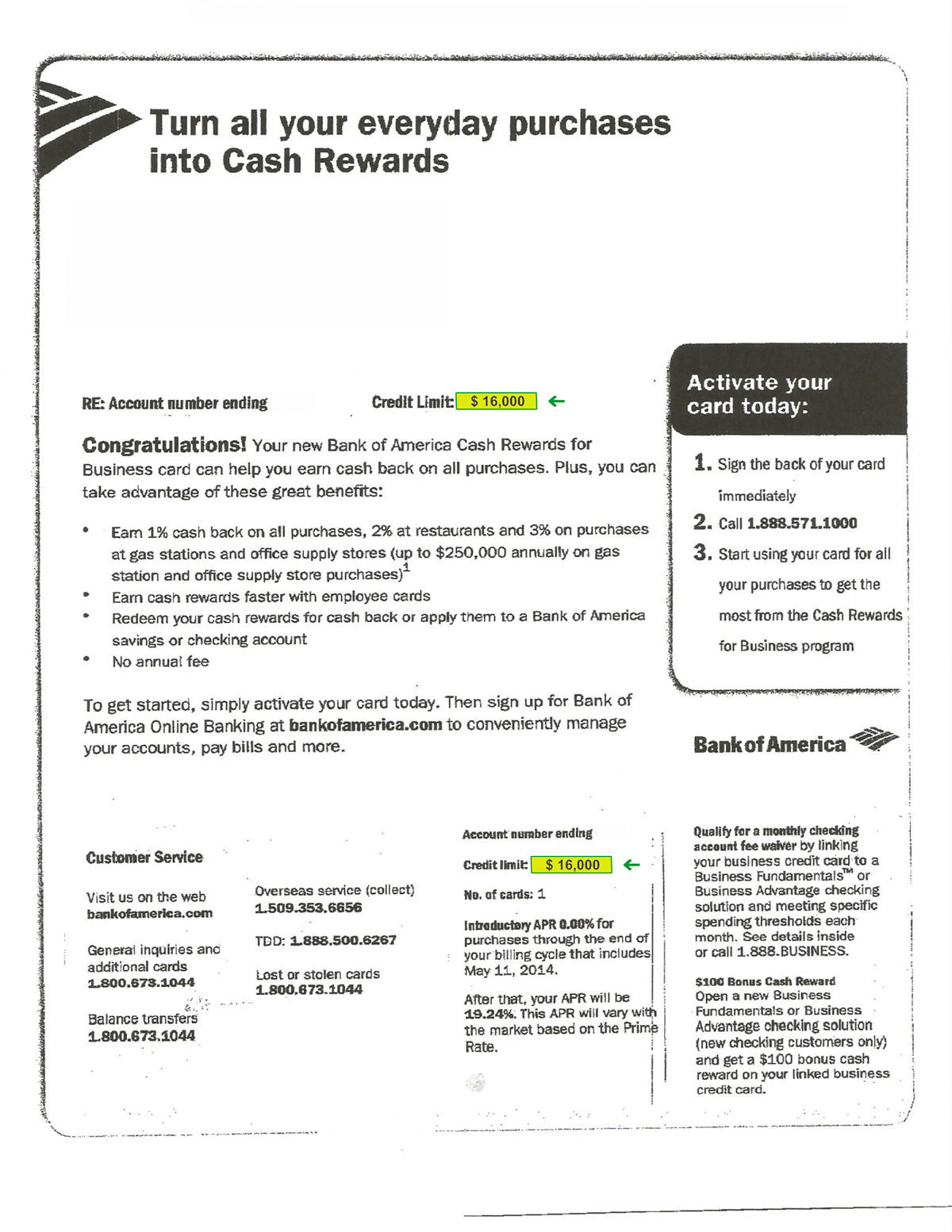 $1,500 BANK OF AMERICA APPROVAL Approval