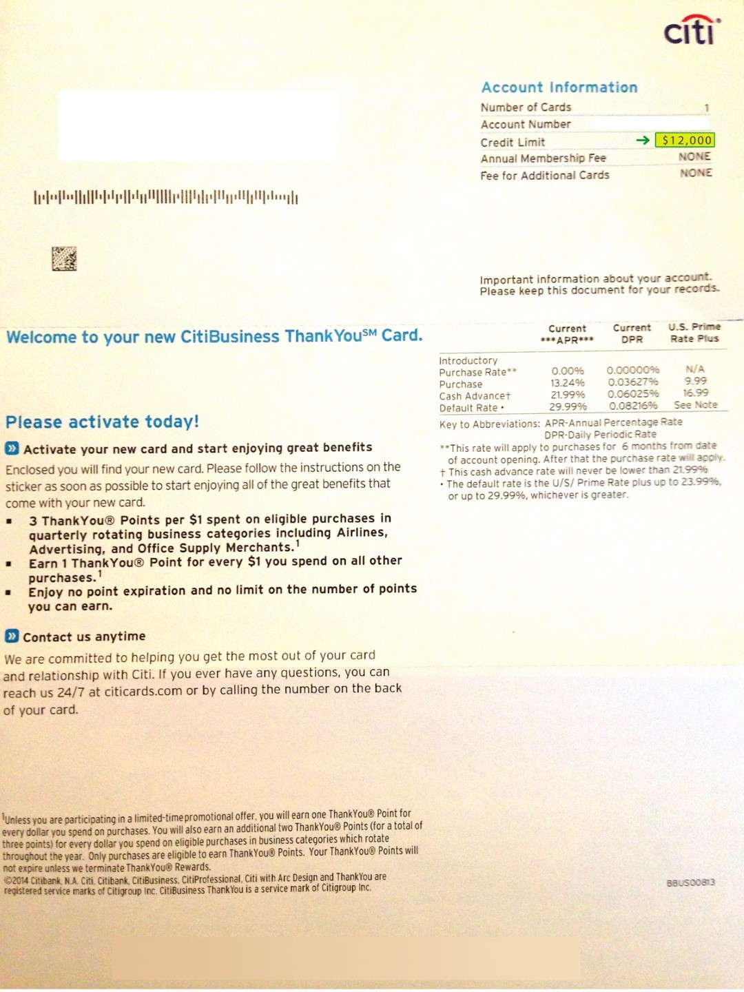 $12,000 CITI BUSINESS APPROVAL