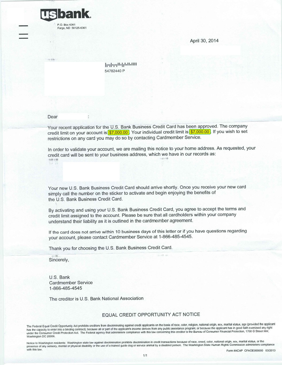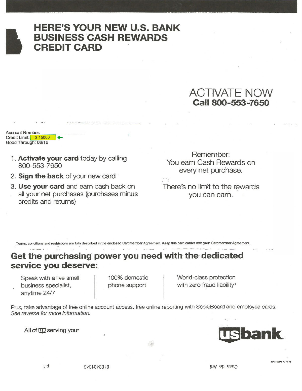 $7,000 U.S. BANK APPROVAL