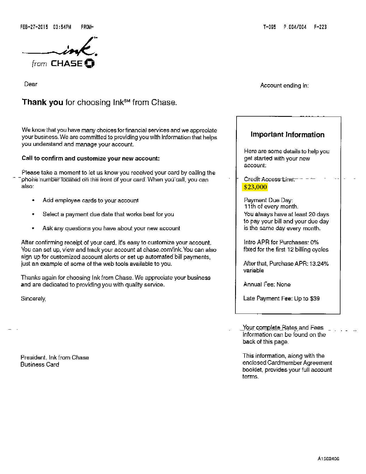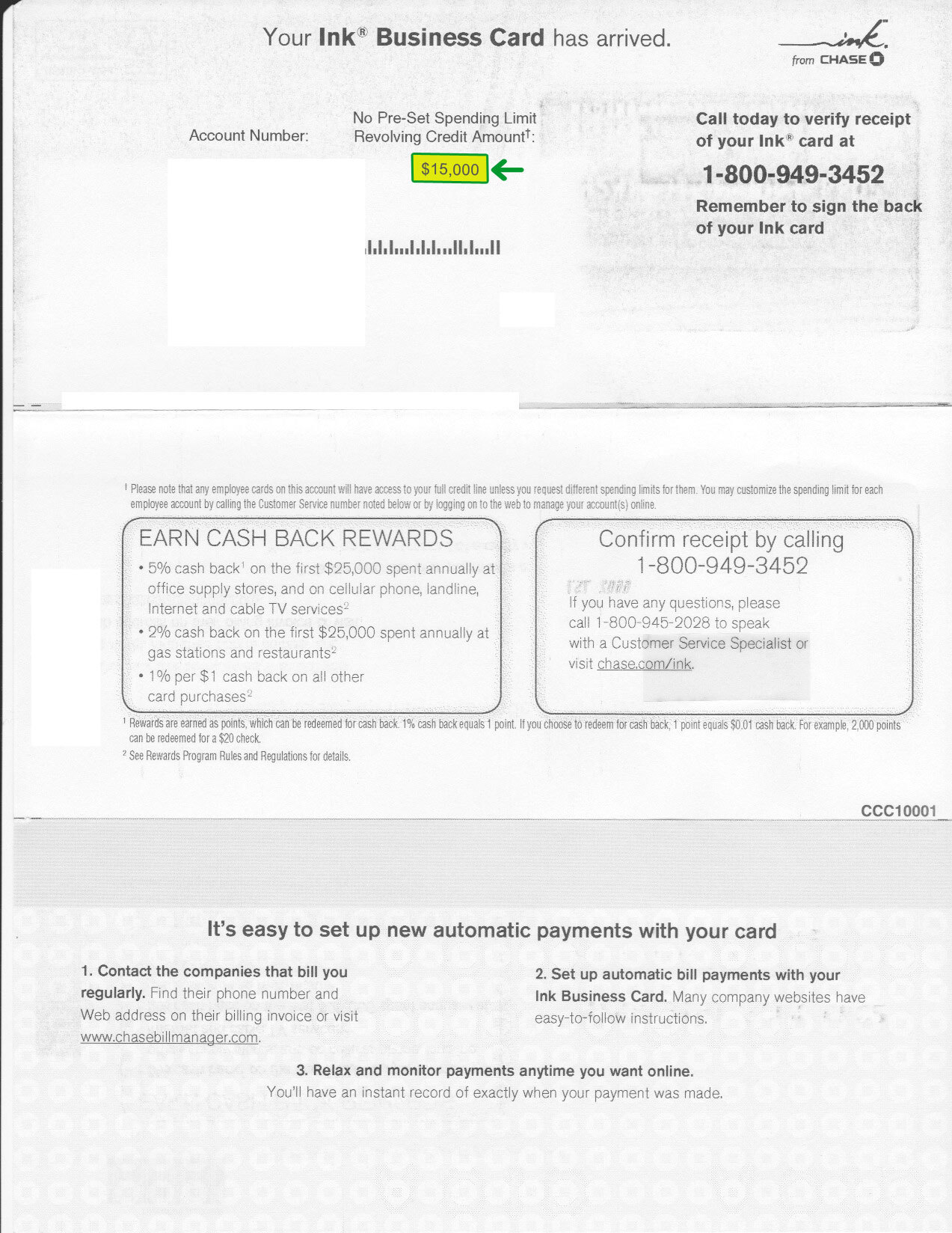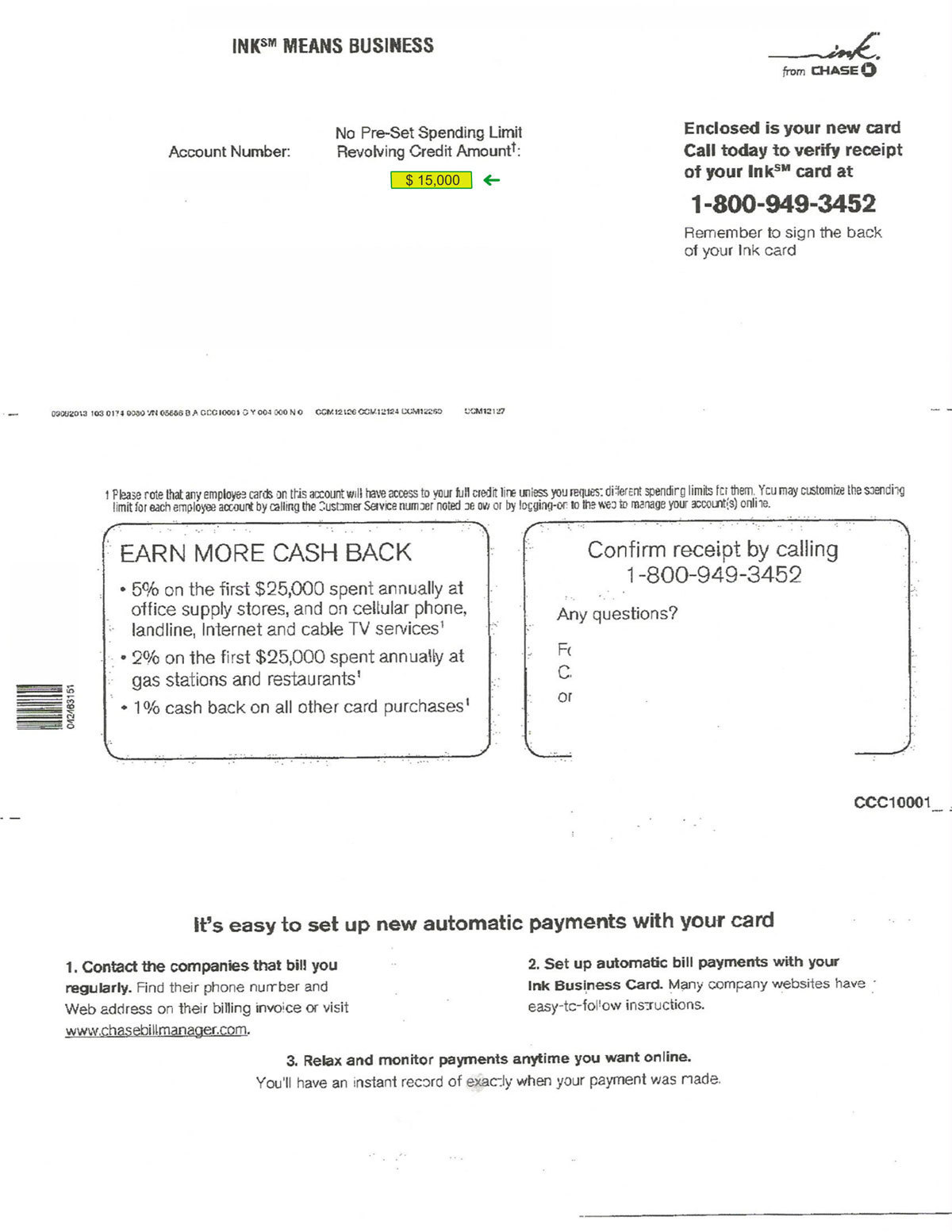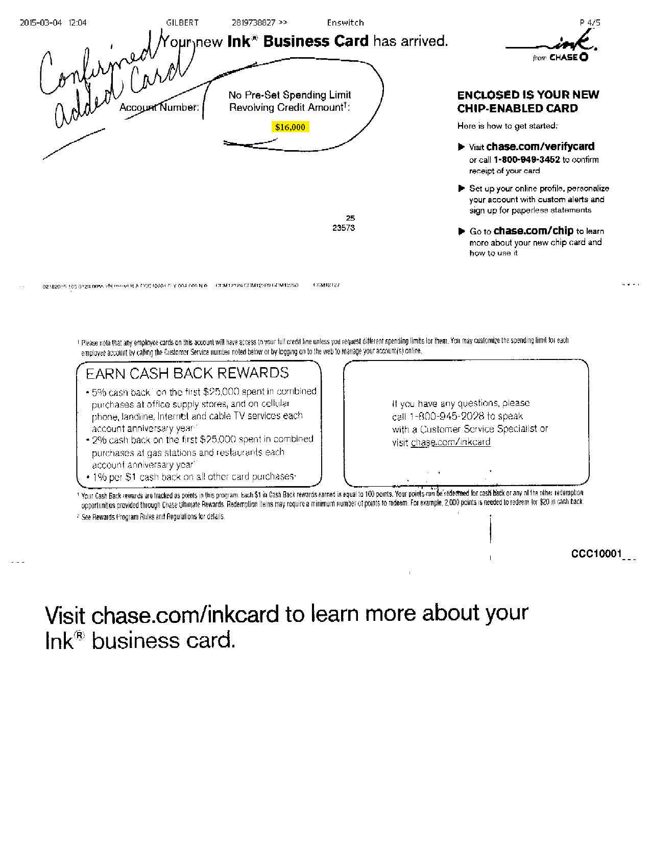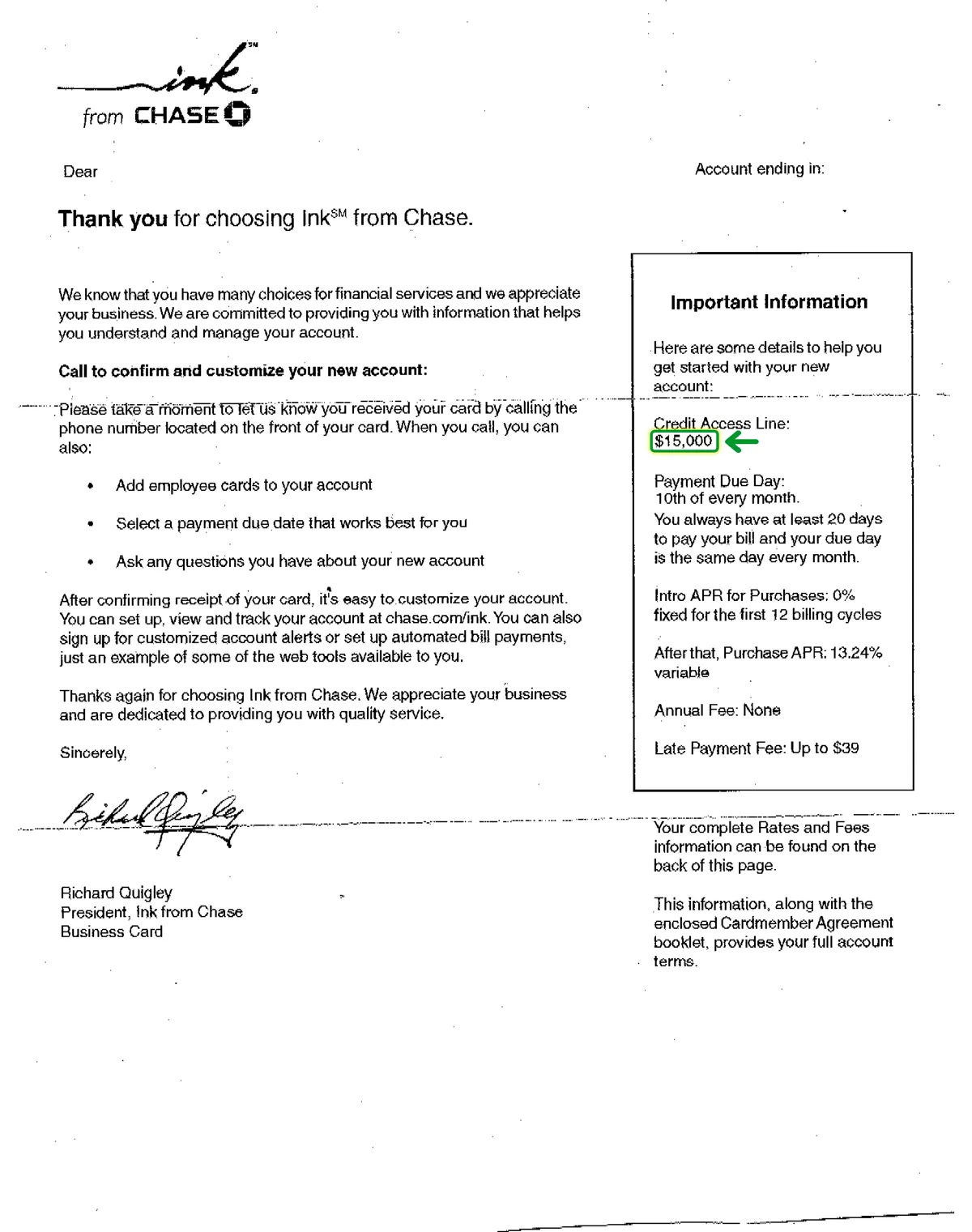 $15,000 CHASE APPROVAL