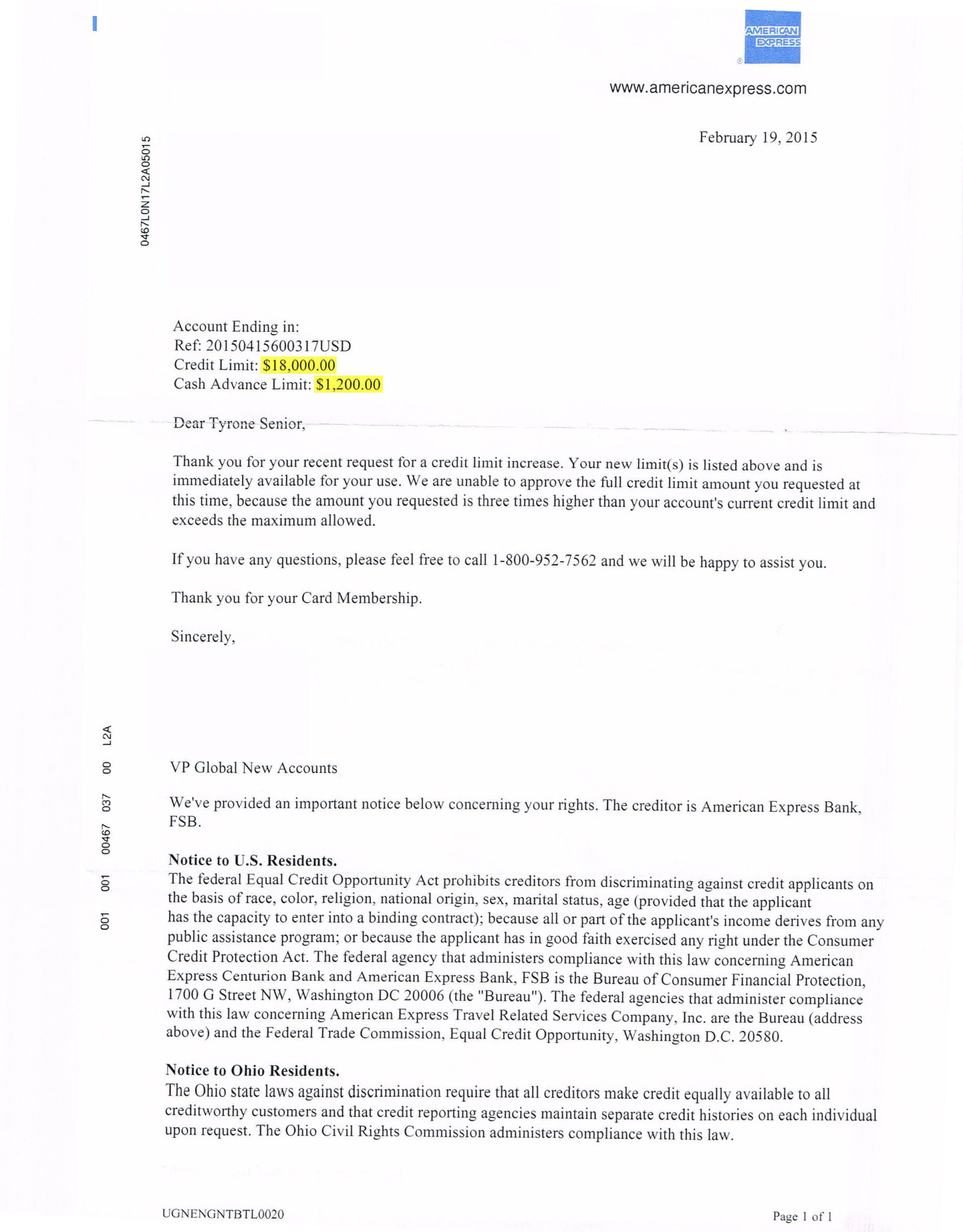 $17,000 AMERICAN EXPRESS BANK APPROVAL