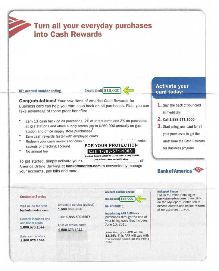$8,000 BANK OF AMERICA APPROVAL