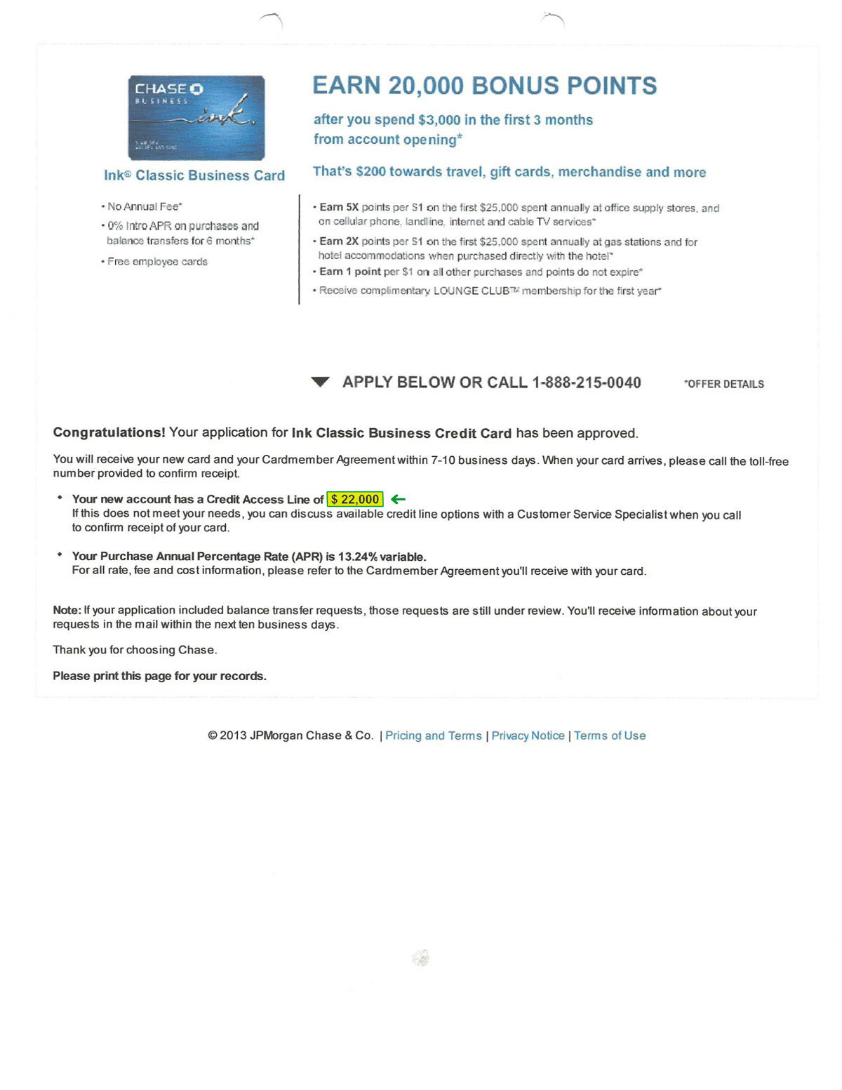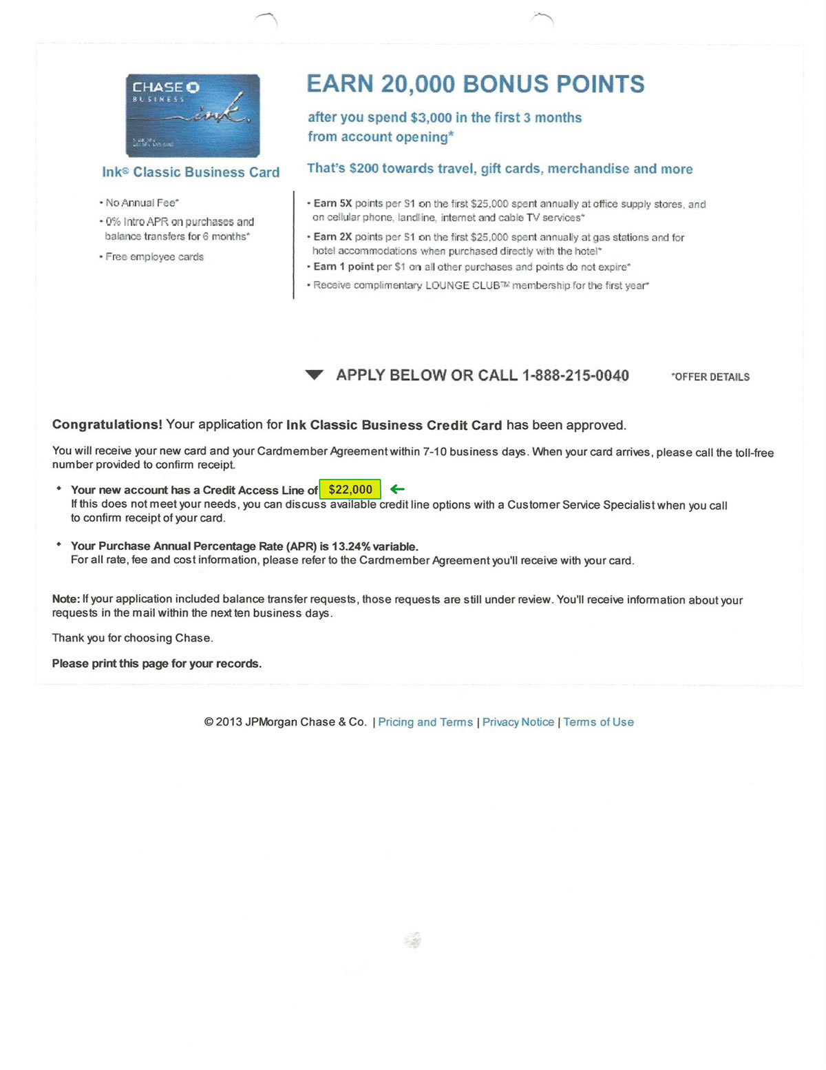 $10,000 CHASE APPROVAL Approval