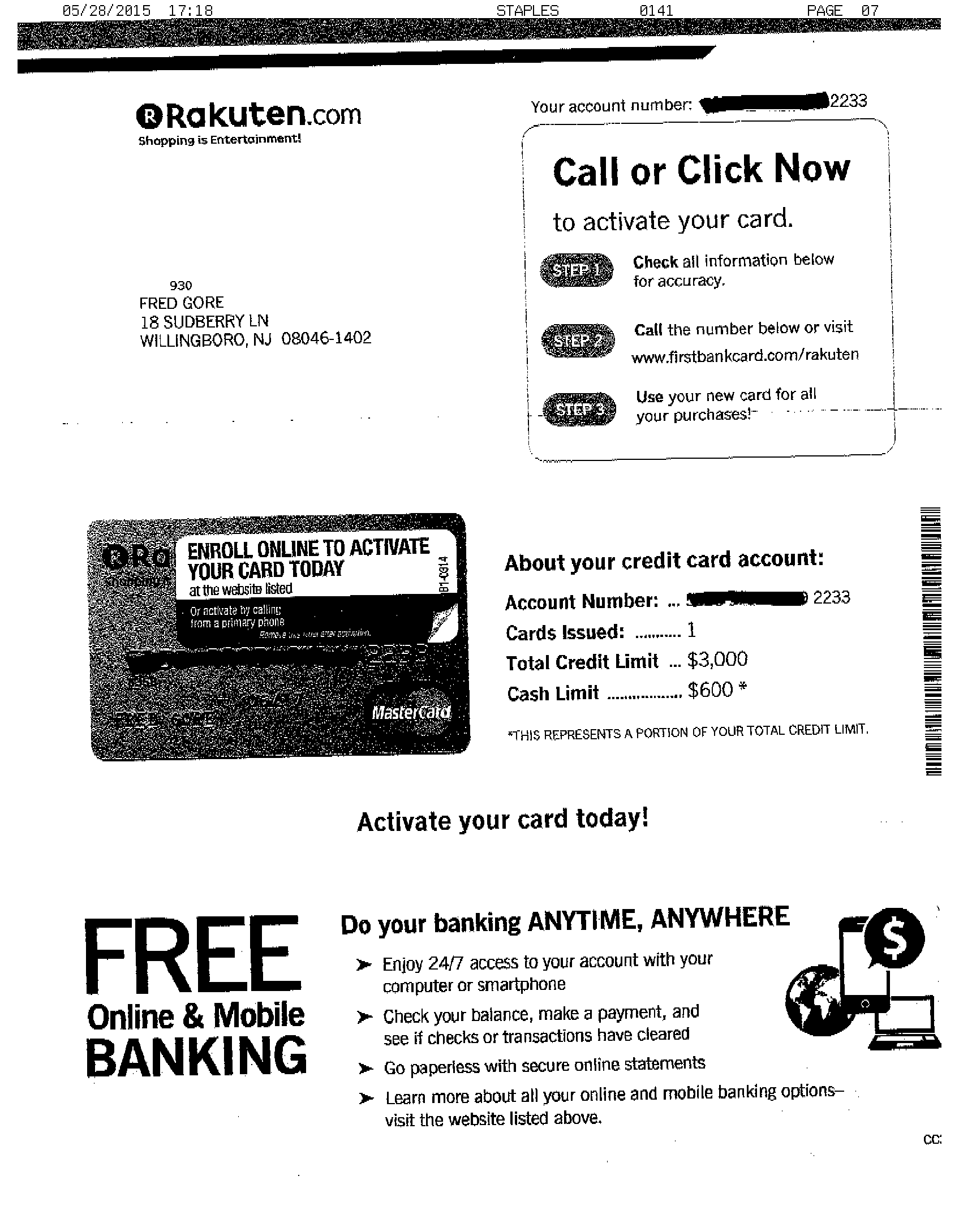$3,000 RAKUTEN REWARDS APPROVAL