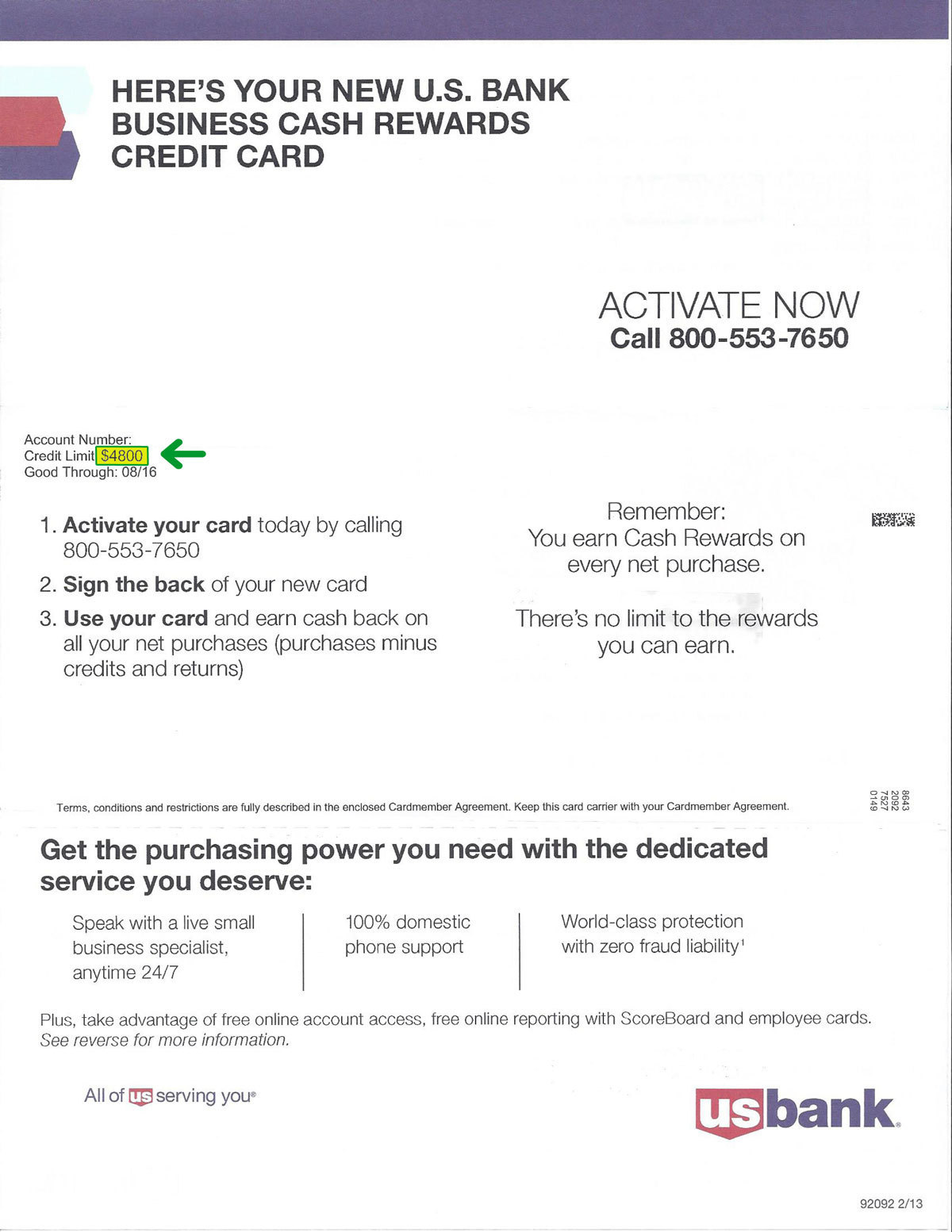 $4,800 U.S. BANK APPROVAL