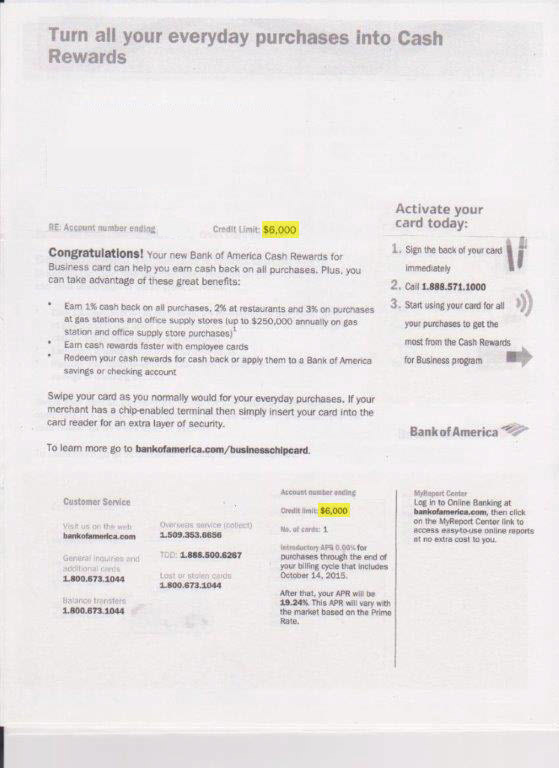 $6,000 BANK OF AMERICA APPROVAL