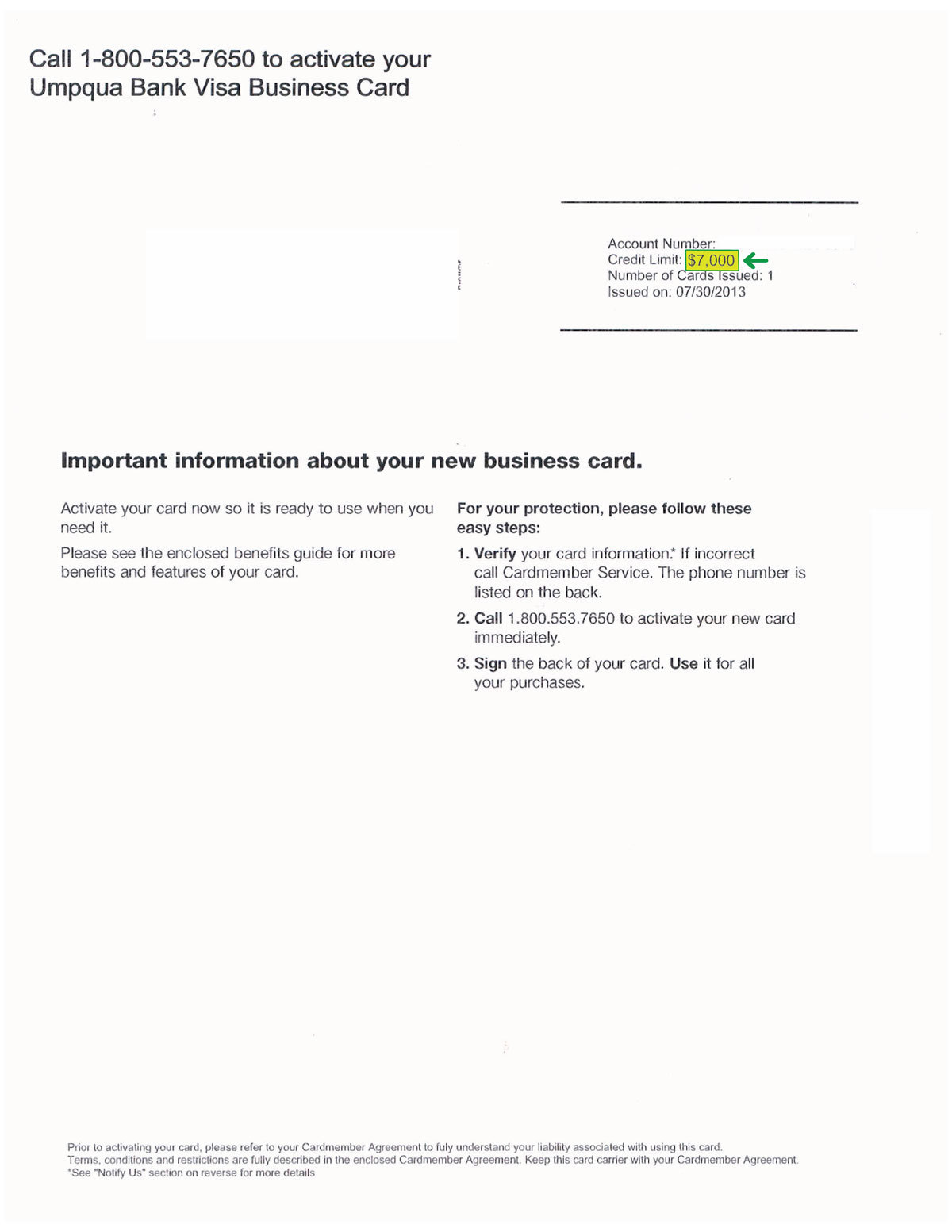 $7,000 UMPQUA BANK APPROVAL