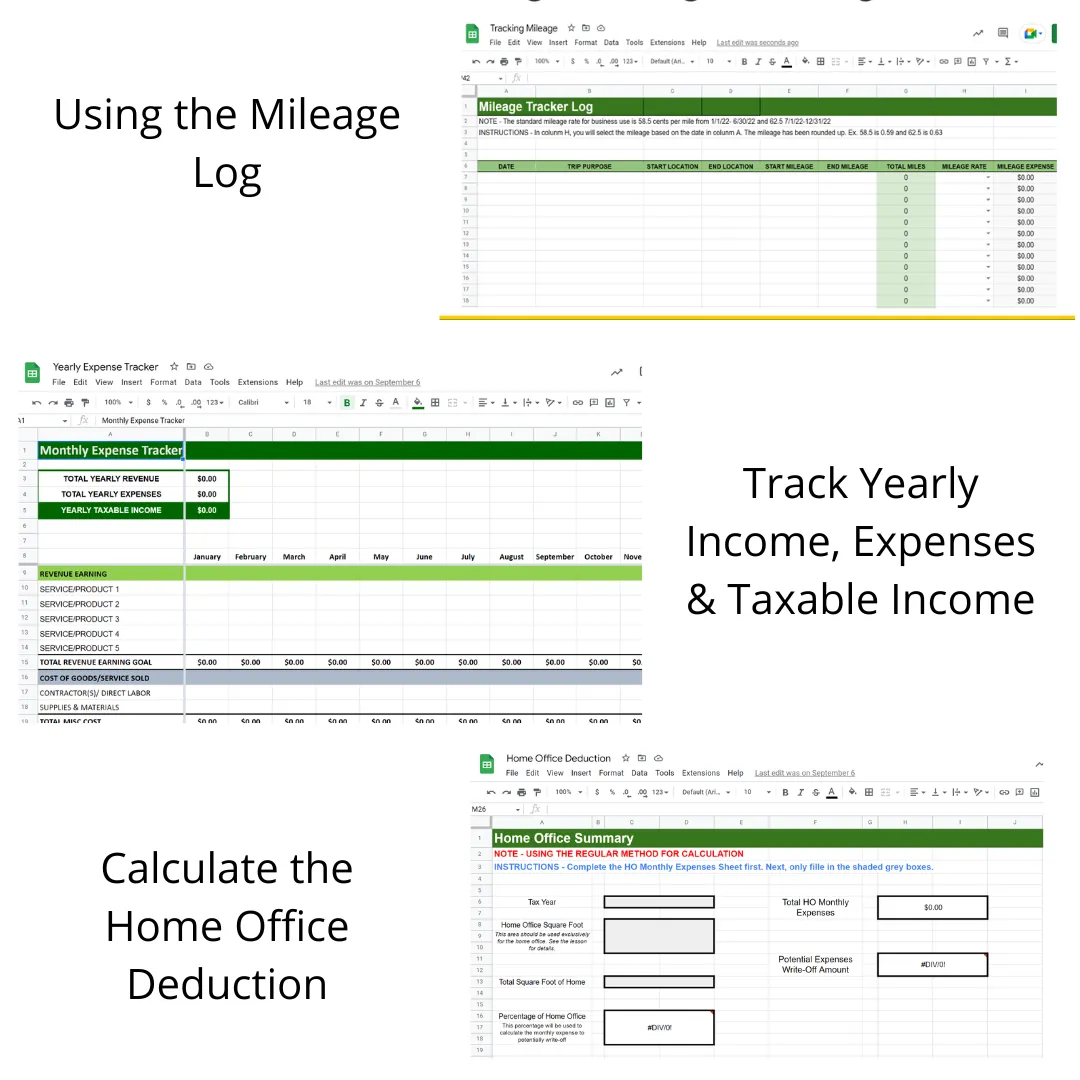 Now you will have checklists, plug-and-play worksheets, a workbook, and more to have a pain-free, maximizing deductions, tax season!