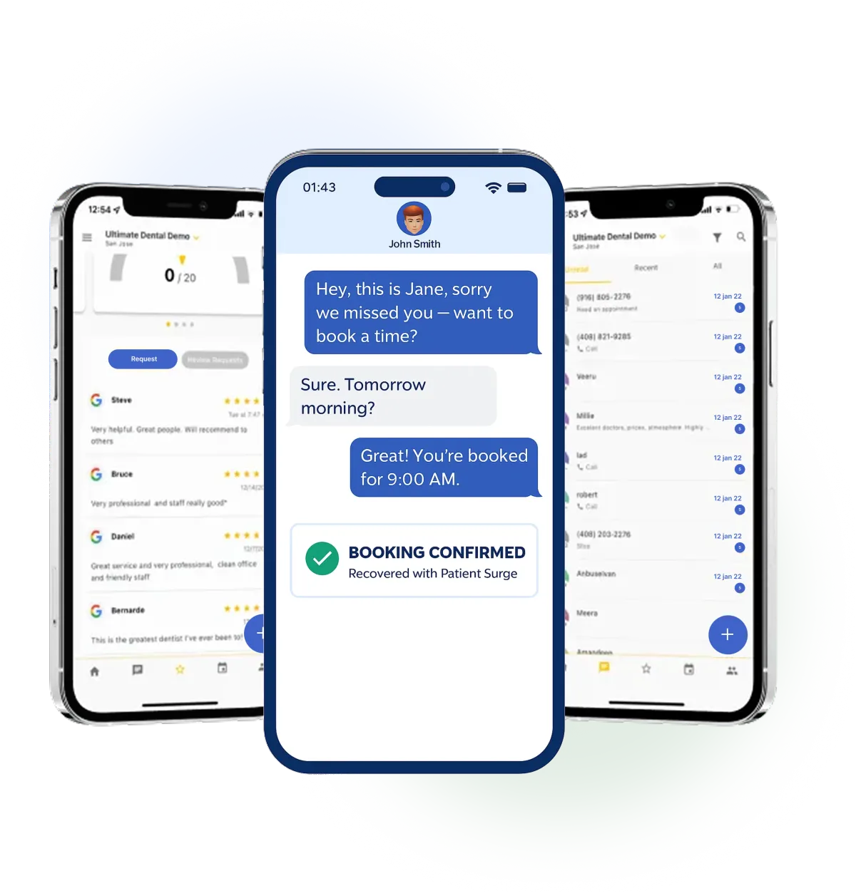 Turn missed calls into booked appointments, collect more 5-star reviews, and keep patients loyal with simple, automated follow-ups.