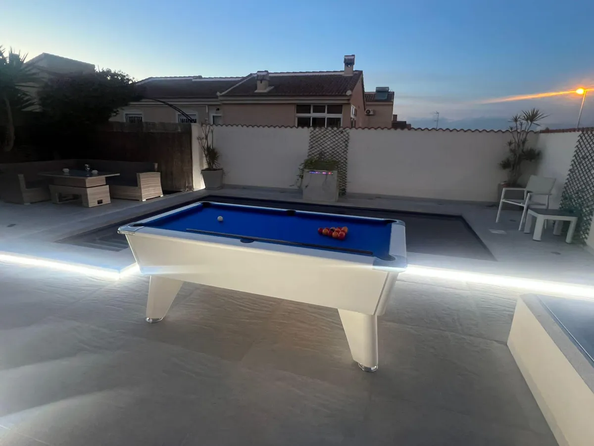 ✔ Outdoor-rated white finish | ✔ Tournament-level 19mm precision slate | ✔ Free-Play or Coin-Op models