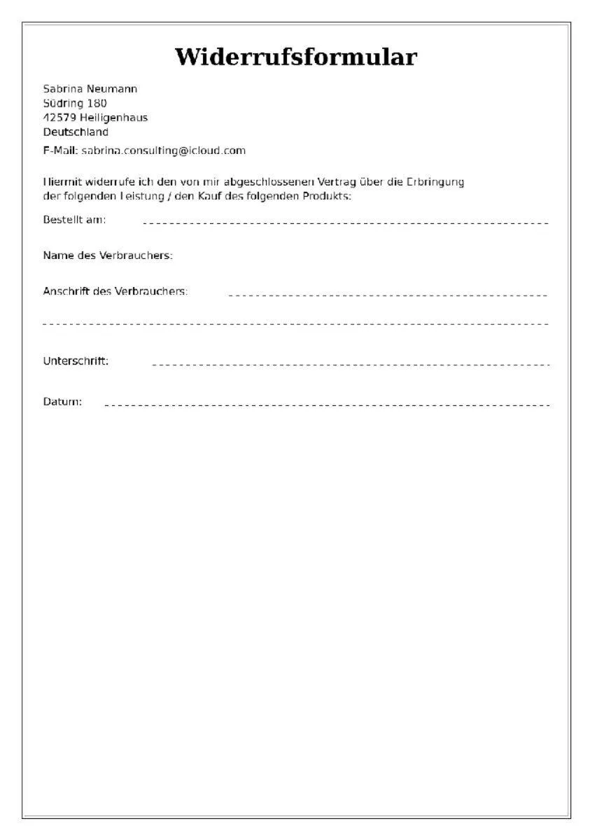 (Wenn Sie den Vertrag widerrufen wollen, können Sie dieses Formular verwenden.)