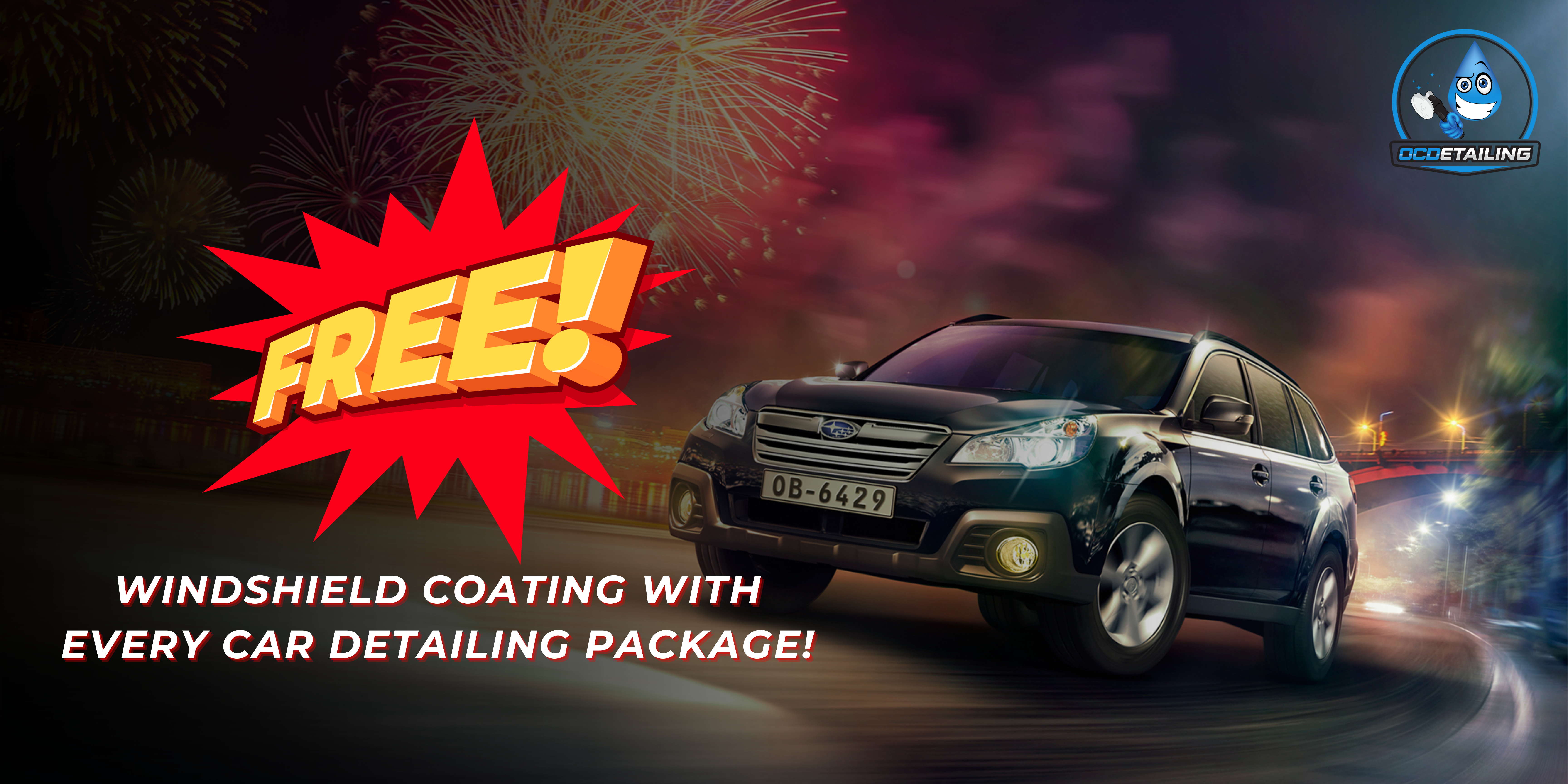 Enjoy FREE WINDSHIELD COATING with every car detailing package!