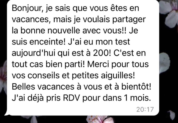 J'aimerais beaucoup mais il est impossible de promettre une grossesse. Je promets en revanche de la compréhension et des méthodes applicables pour réussir à avoir la meilleure grossesse possible.