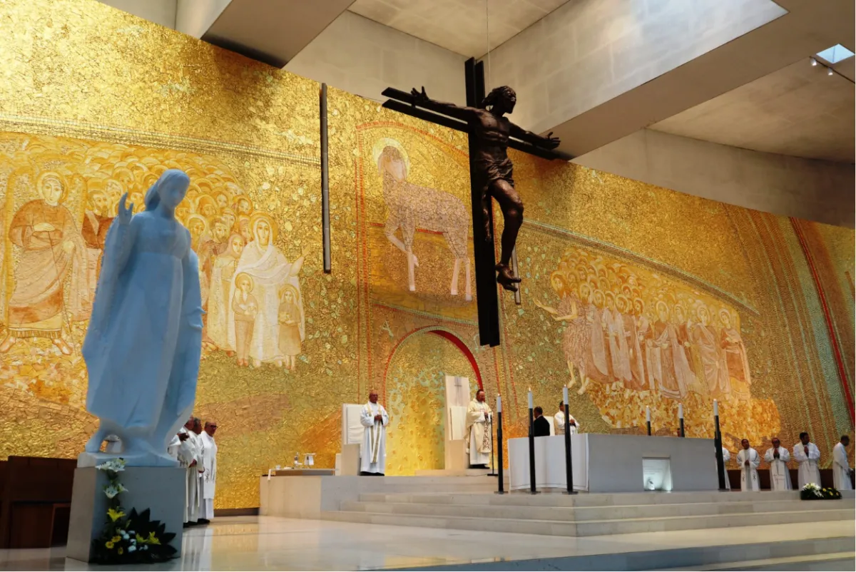 O coração espiritual do local, reunindo peregrinos de todas as partes do mundo. Um espaço amplo, silencioso e profundamente simbólico.