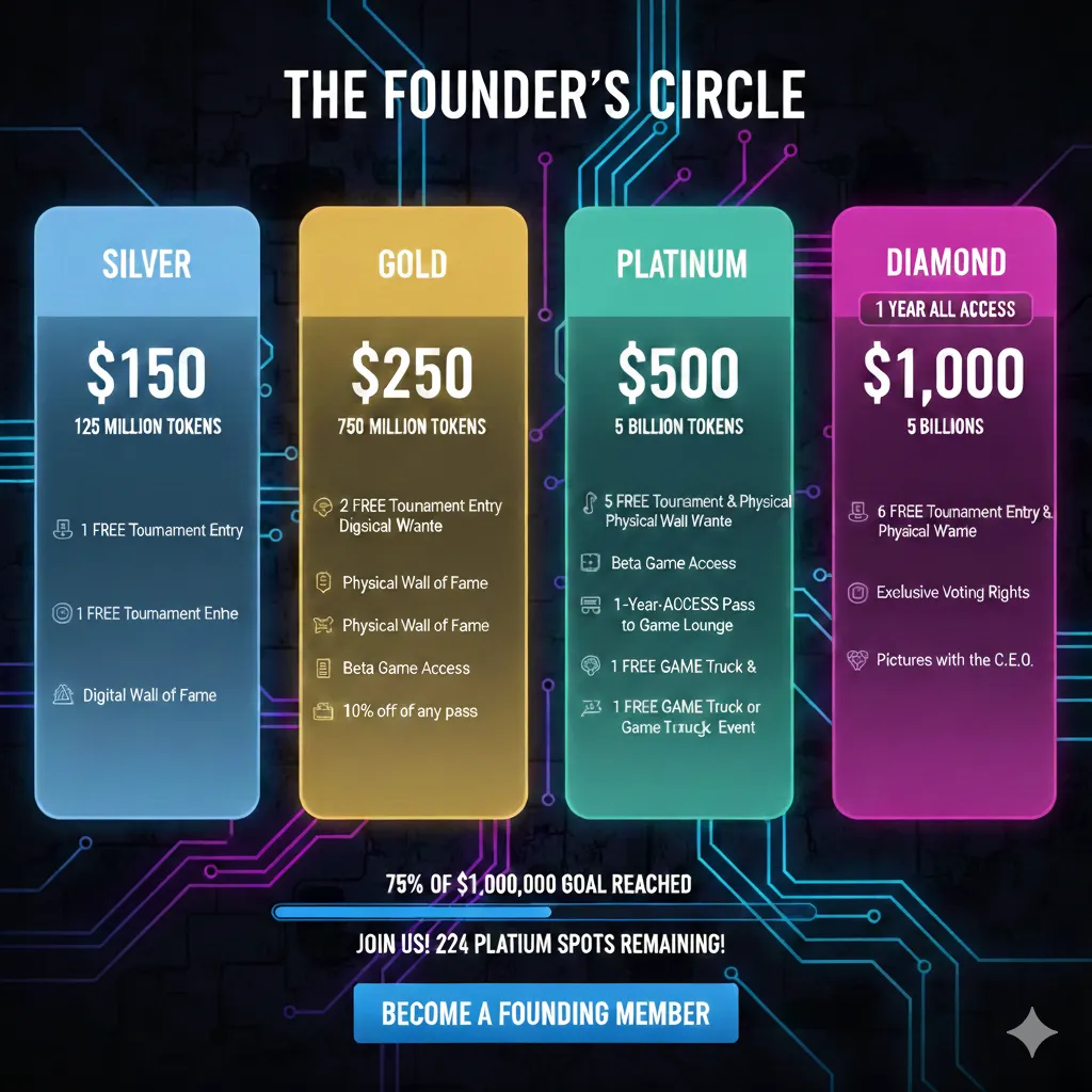 Founders receive a “Lion’s Den” seat — giving you voting power on future arcade locations, game integrations, and major ecosystem decisions.