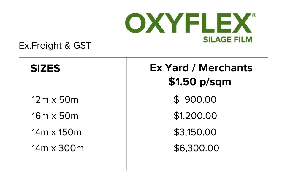 OXYFLEX is a high oxygen barrier film so virtually ZERO oxygen can penetrate the sheet & enter your silage.
