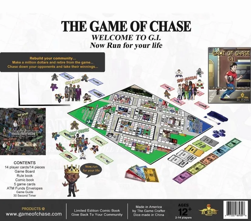 Welcome to "Game of Chase: Gangsta Island"! Immerse yourself in a thrilling underworld where rival gangs battle for control, high-stakes heists unfold, and alliances are forged and shattered. Rise through the ranks, outwit your opponents, and become the ultimate kingpin of Gangsta Island. With immersive gameplay, strategic decision-making, and high-quality components, this board game delivers an unforgettable experience. Can you navigate the treacherous streets, establish your dominance, and reign supreme in this world of crime and danger? Get ready for an intense adventure where every move counts.