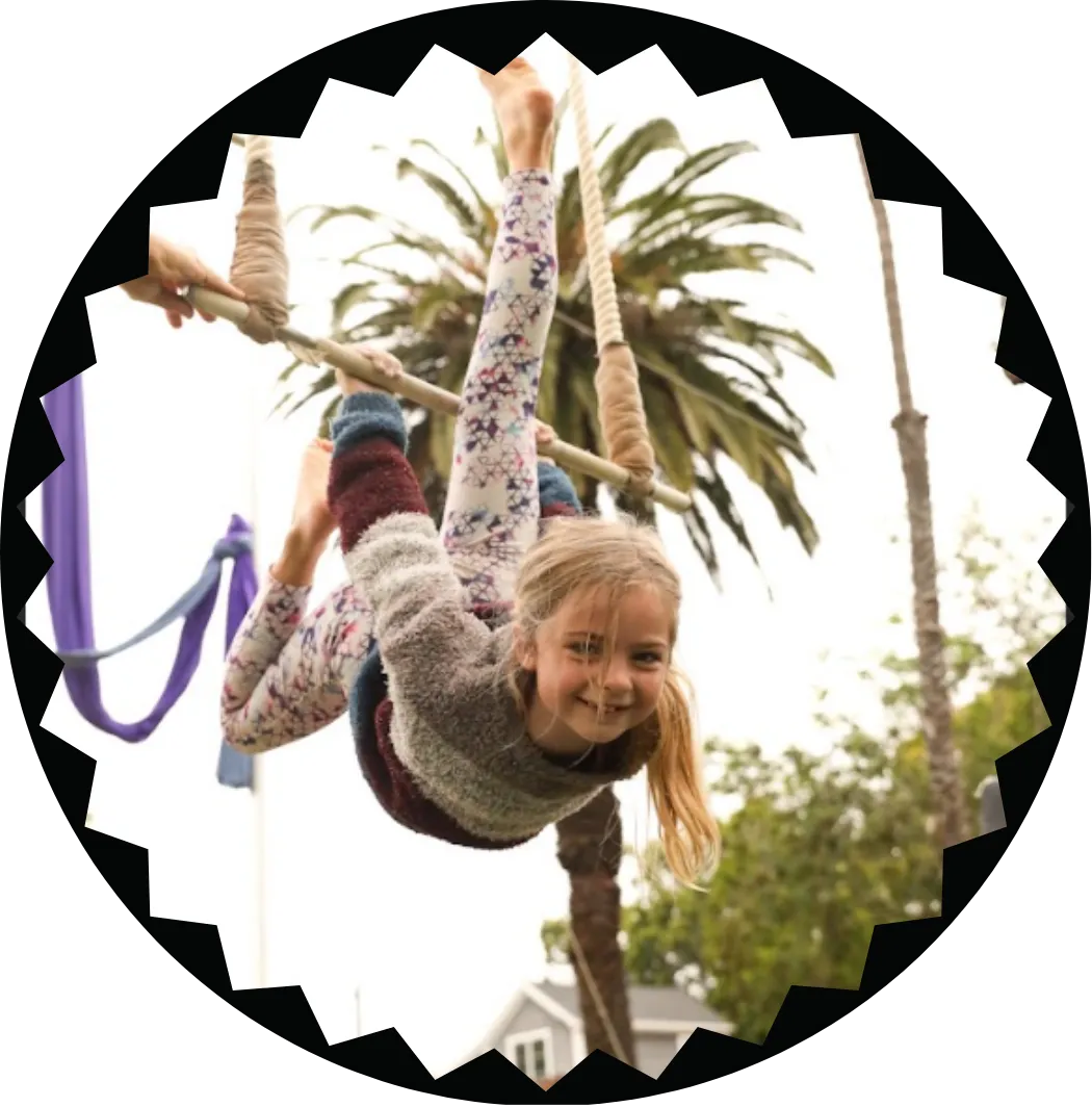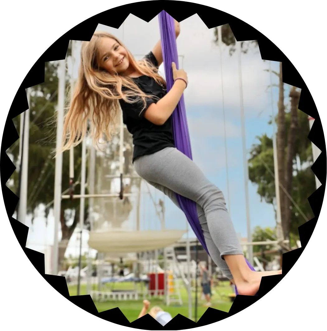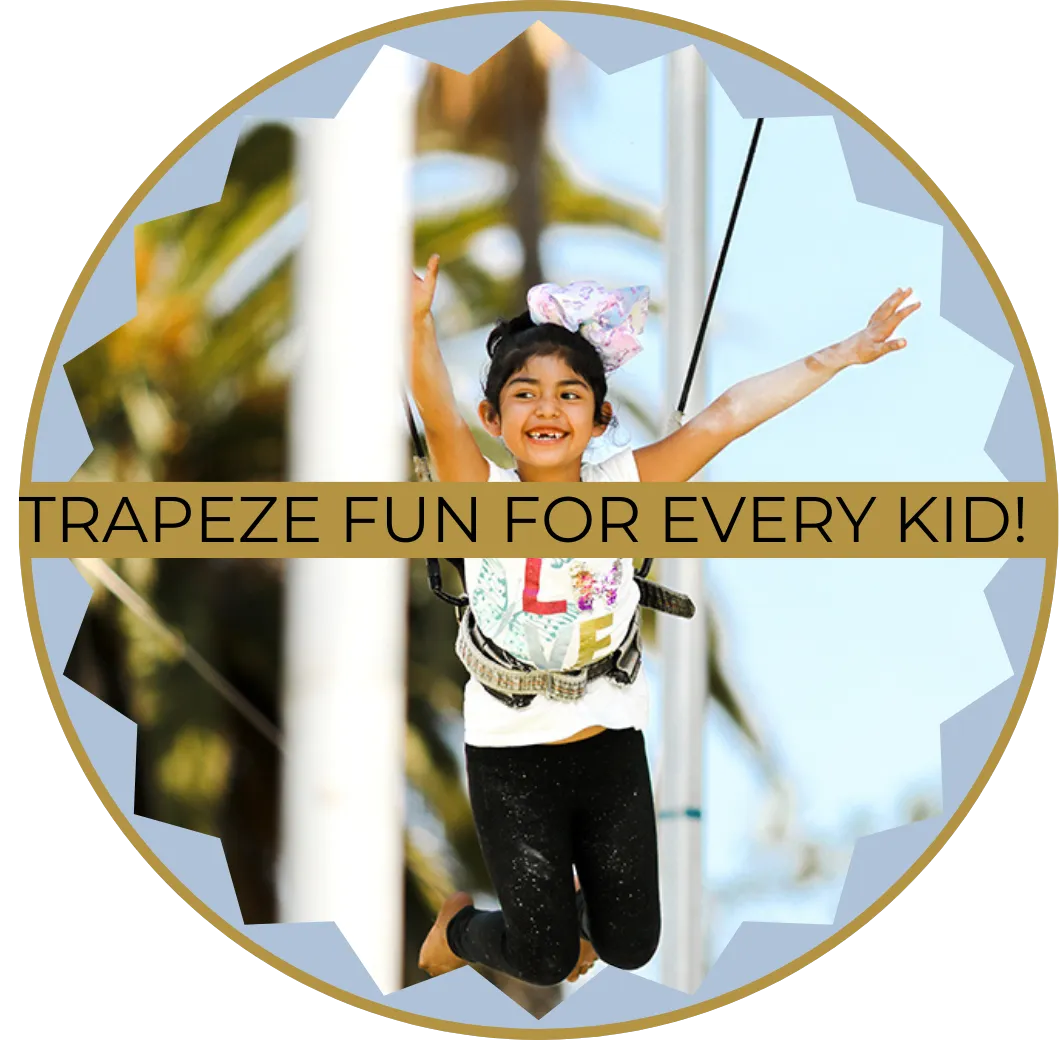 "Watch your child soar to new heights—literally! Every child gets a chance to shine on our mini trapeze, conquering fears, building confidence, and creating unforgettable memories with their friends. It’s a celebration of courage they’ll never forget."