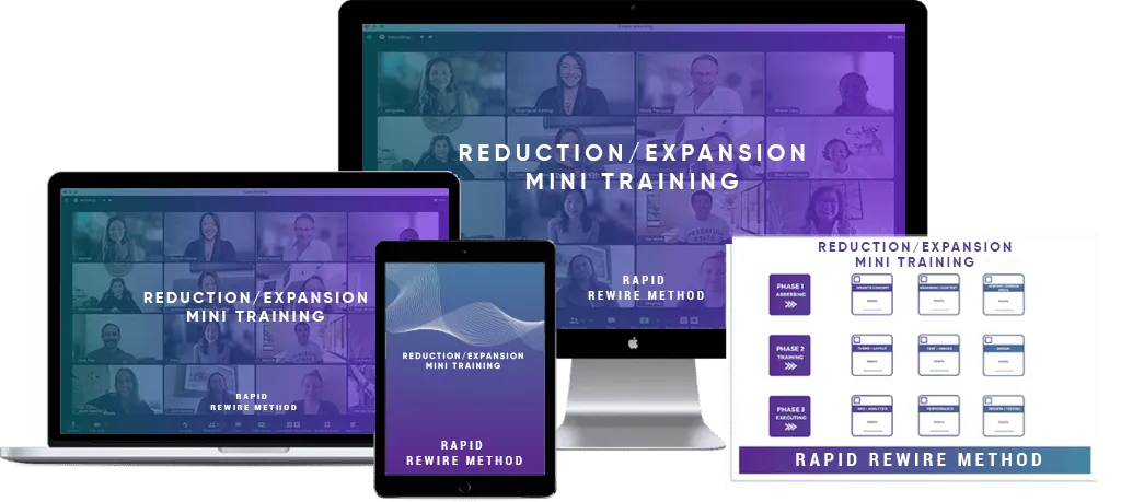 The Reduction-Expansion process can help you or your clients quickly dissolve and integrate emotional turmoil or triggers, any problem, limiting beliefs, stress, a barrier to a goal, or rewire a negative past experience in less than an hour, sometimes as quick as 20 minutes. The Reduction-Expansion process works every time, so you're guaranteed to create liberation for yourself or another with this specific Rapid Rewire Method process.